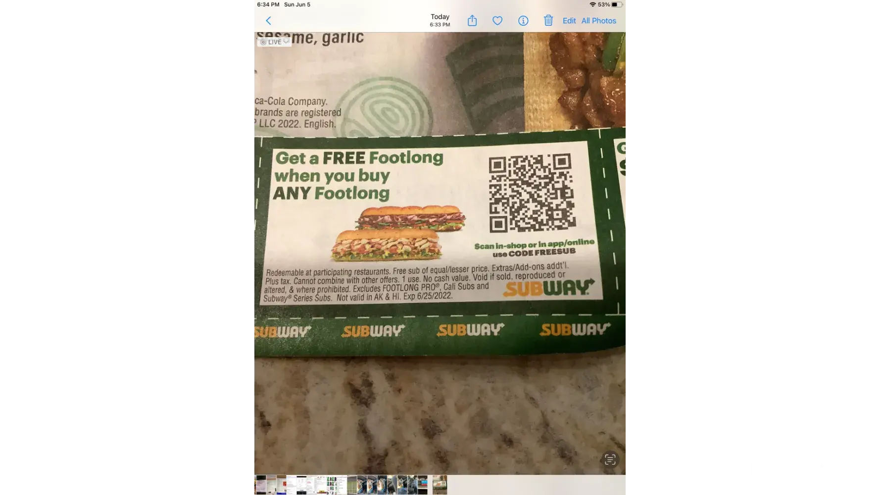 Tried to use a coupon for any foot long for $5.99 on 6/25/22 at 5:30 PM and was told the coupon had already expired even though it should have been good thru that day (expiration date 6/25/22). The scanner indicated that the coupon had expired, so they would not accept it. Any other restaurant would honor such a coupon for the entire last day of the offer. Could you explain what your policy is.