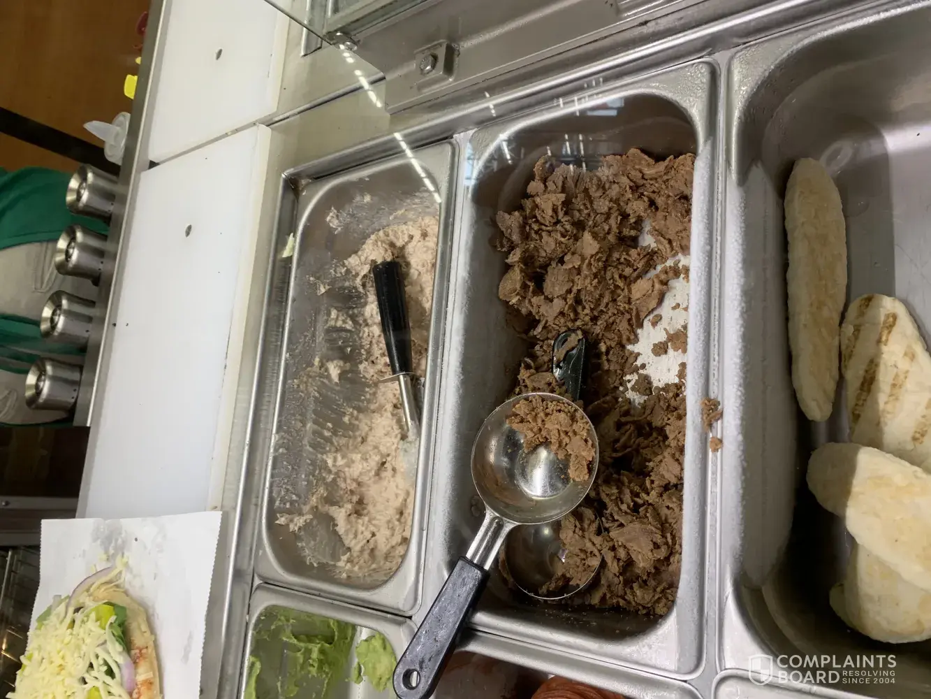 Hello, this is what I found in the Tuna and steak bins at the Subway restaurant inside Walmart Super Center in New Roads Louisiana on 6/2/2019. I can understand dropping the serving utensil Inside the bin by accident, but to leave it there and get ANOTHER utensil and just go around the dripped ones is just down right lazy and unsanitary. I included pictures.
