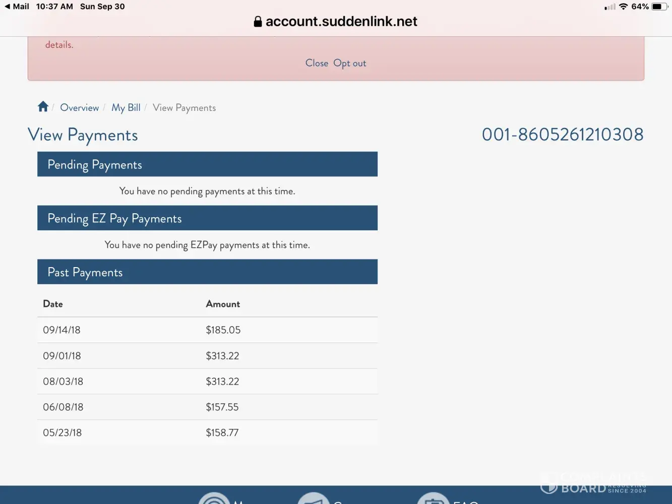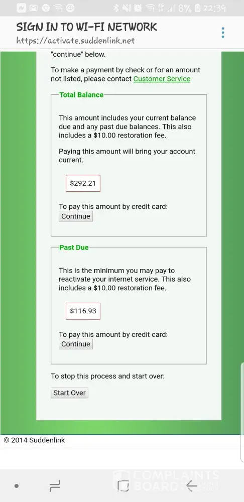 Today my wife tried to pay our past due bill our service was interrupt this morning..the message display had two figures $293 and $116 pay anyone of these figures and service will be restored wife paid the 116 due to fact that we short on money still trying to recover from the storm...anyway after a couple of hours service was not restored I call and was told that I had ro pay an additional 159..I told lady thats not what your message board says so she transferred me to another dept come to find it sales dept I was sent to then I was sent to tec support the to accounts dept and each time I had to explain what was going on anyway inqas told that there is glitch on the message board and there was nothing that could be done so I ask her so if i had made my payment the on the day before