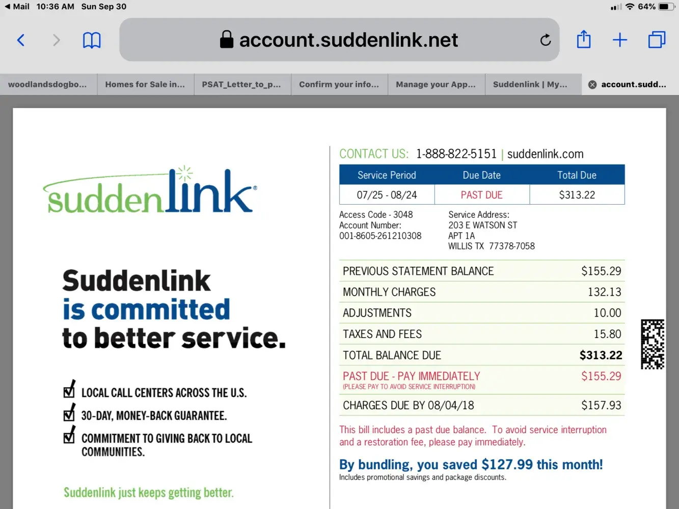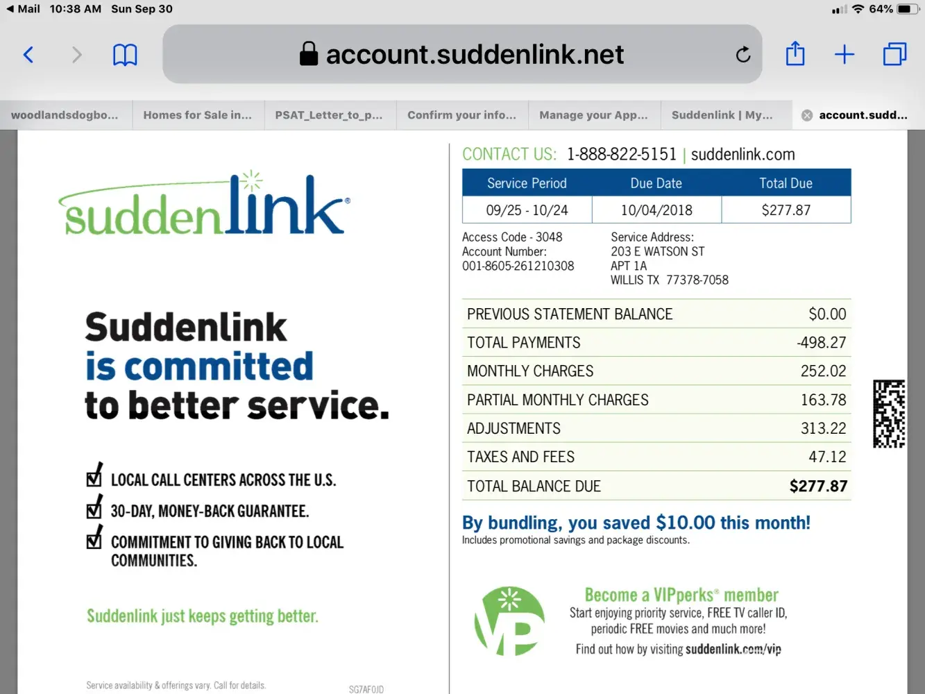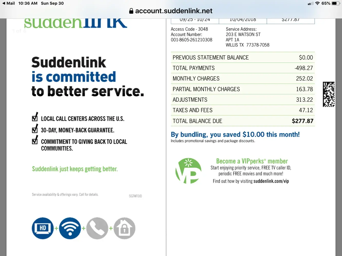 My name is Bobbye Phillips, I am DEAF, address 203 E. Watson Willis, Texas 77378. My account number [protected] my pin for that account is 3048. Just got this service middle of June 2018 . I ask for internet and cable service, it show 105.99 which add fees and tax end up 163.99 I do understand the bill amount. But why is it chargering me 185.05 then now chargering me today 277.87? The bill shouldn't be adding, it should have been same amount every month. Thank you for reading this. Have a wonderful day...