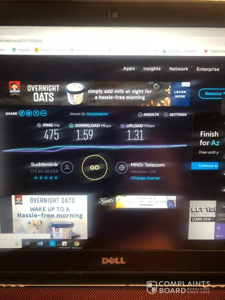 Here is my internet speed I’m receiving of 1.59mbps instead of the 200mbps I’m suppose to be
