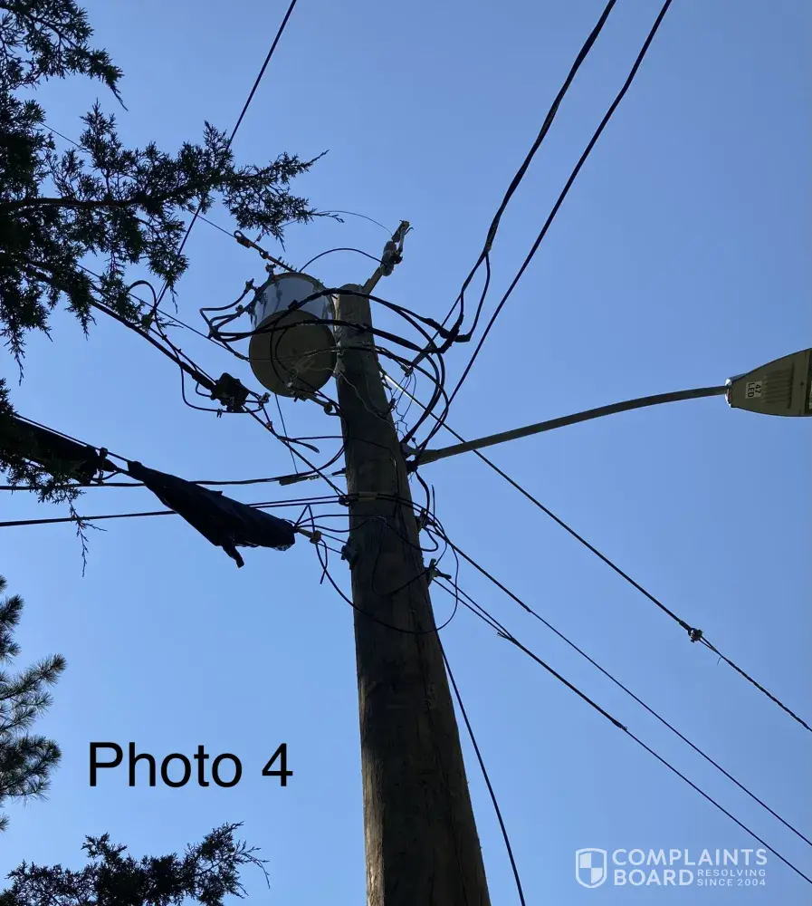 But to get to the problem. The connector at the top of the pole only allows two connections as you can see in photos 4 and 5. The installer for 2826 said he would put a work order in to get this replaced.