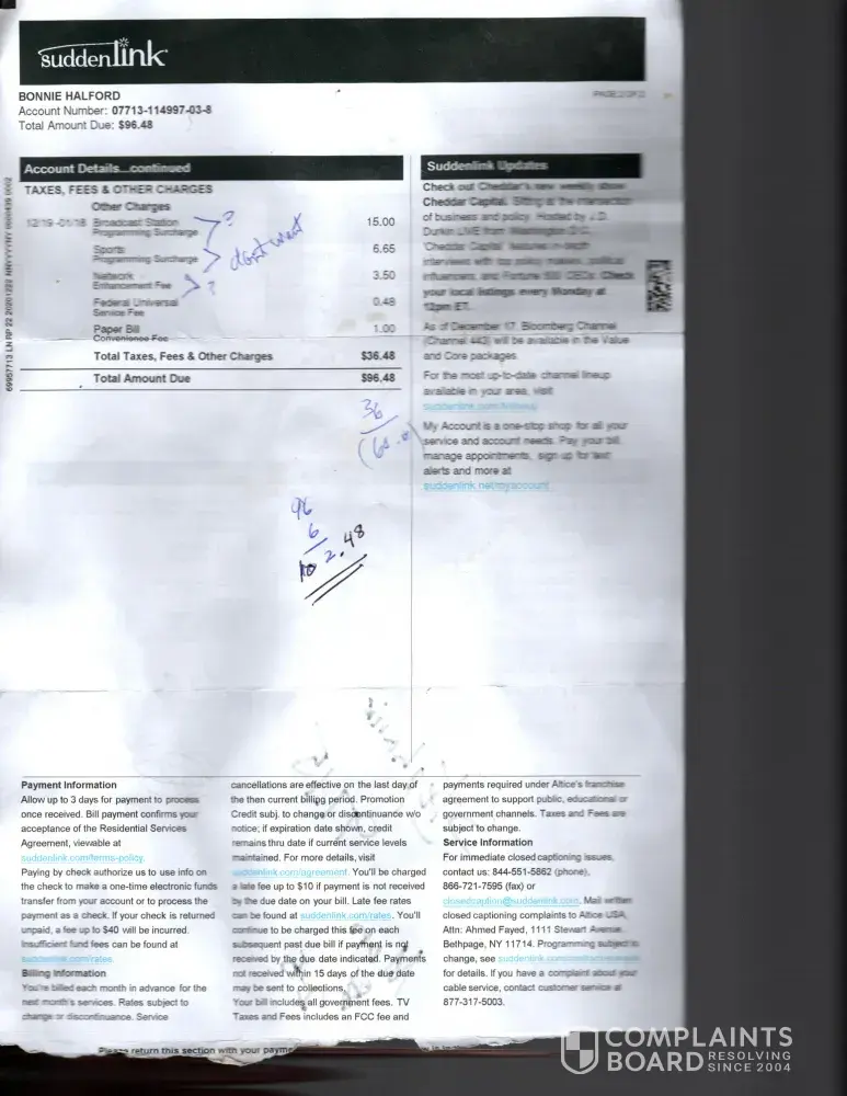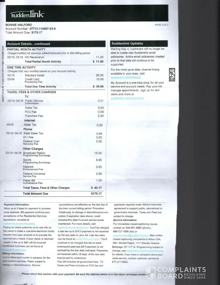 Altice one suddenlink billing statement disconnection