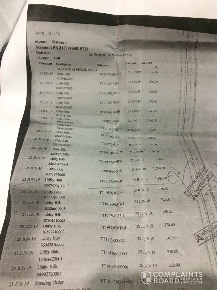I have paid in m/s. Allied bank limited, mall branch, Lahore on June 25, 2019 but still this bill is appearing in August after making rectification (2 times) from Johar Town office (sui gas).