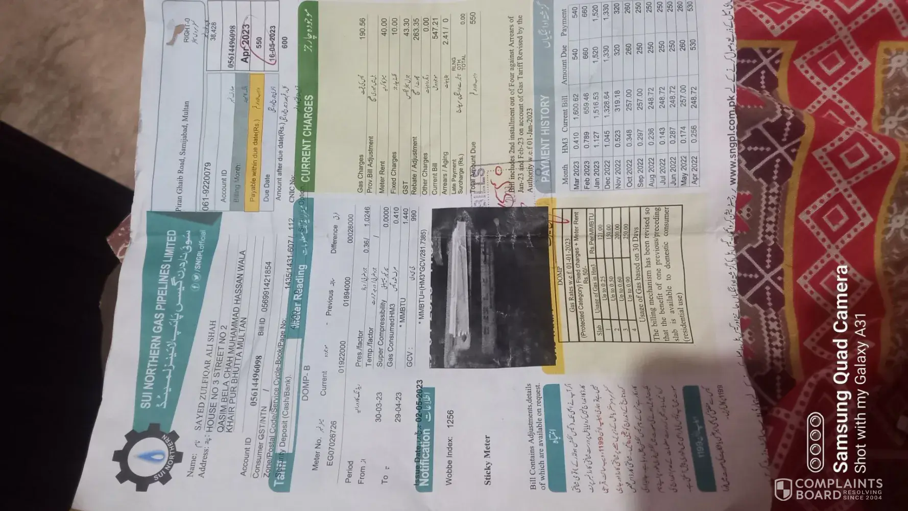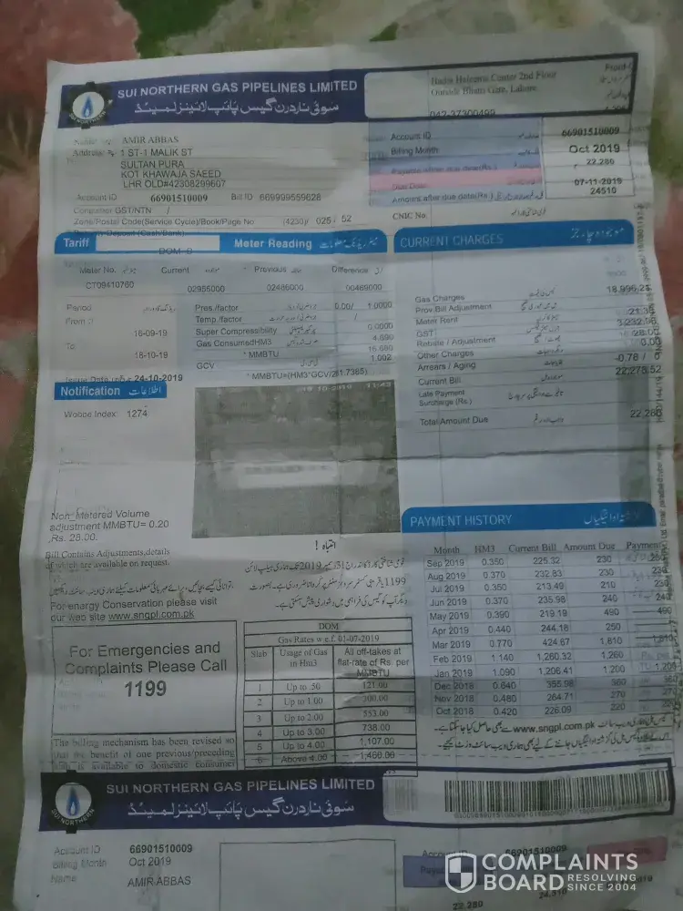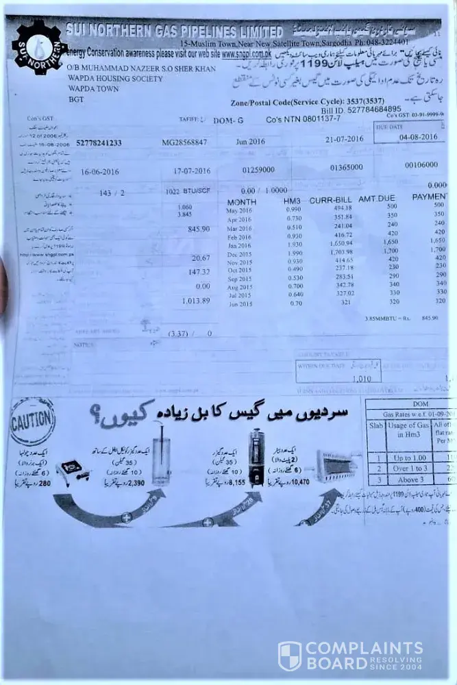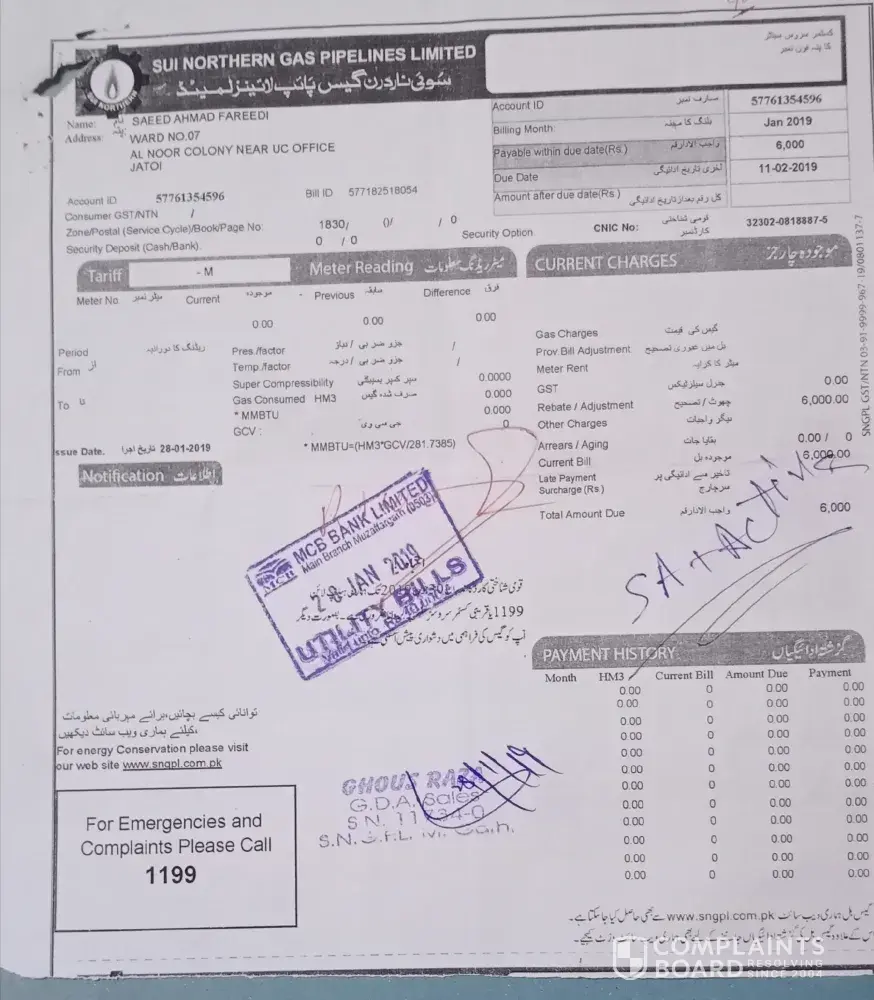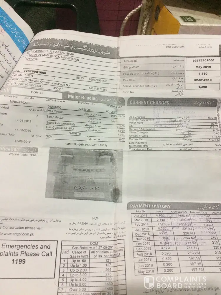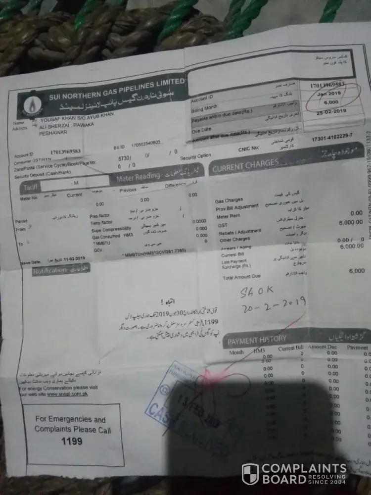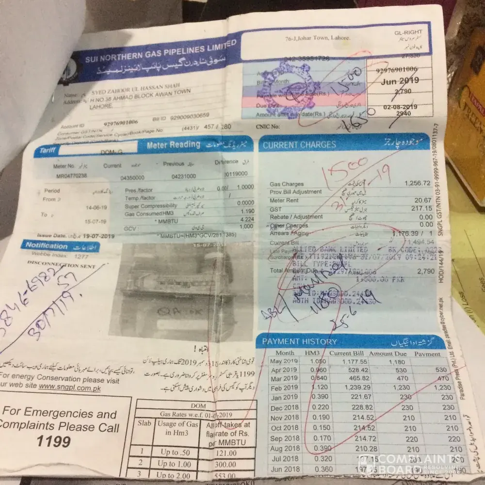 I already complaint to sngpl company mentioned complaint number on bill.