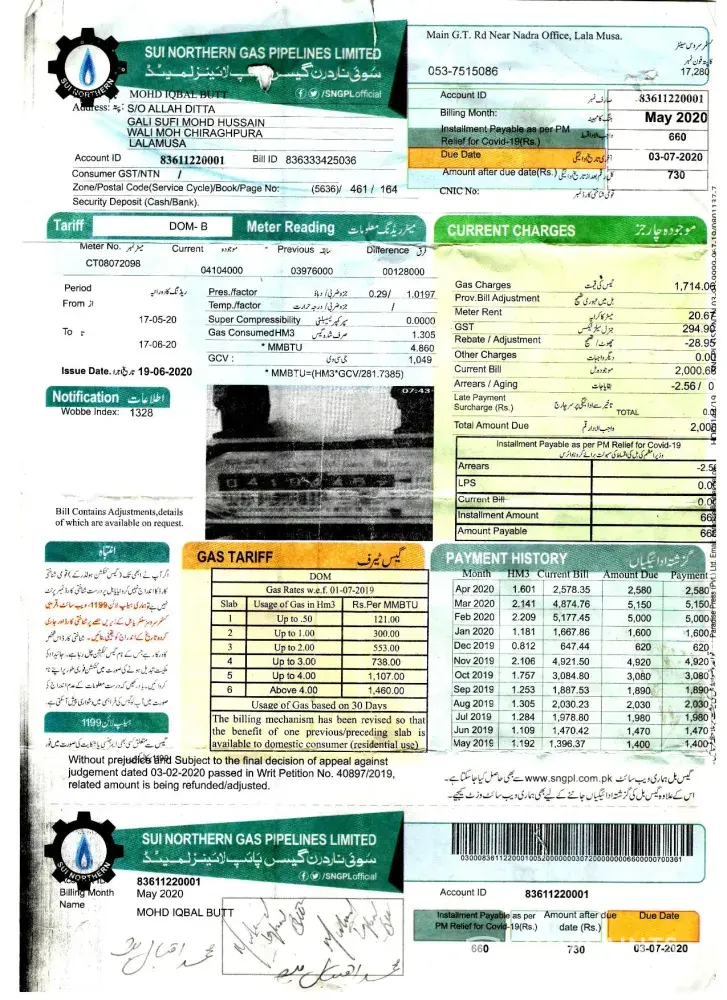 I Muhammad Ashiq address House No. 37/A,Street No. 6 Ahmad Town Sharif Pura Lahore having Sui Gas Meter No. BK1602045754 and Account ID. [protected]