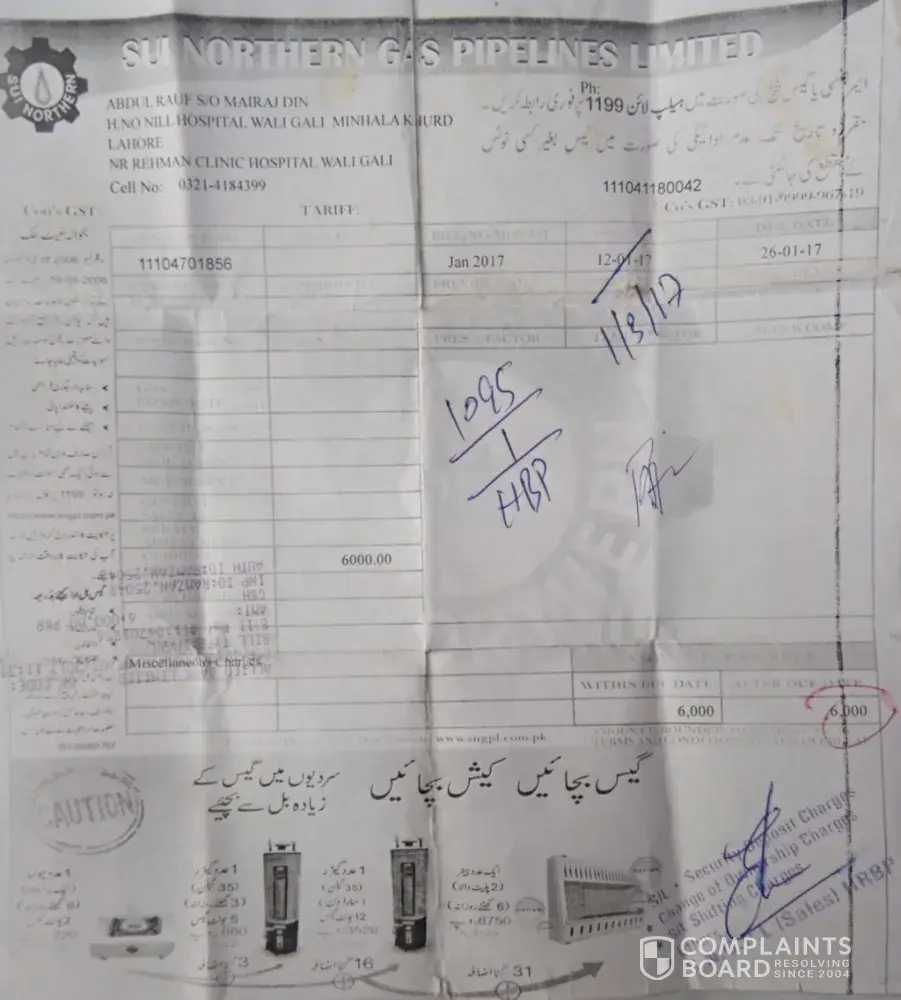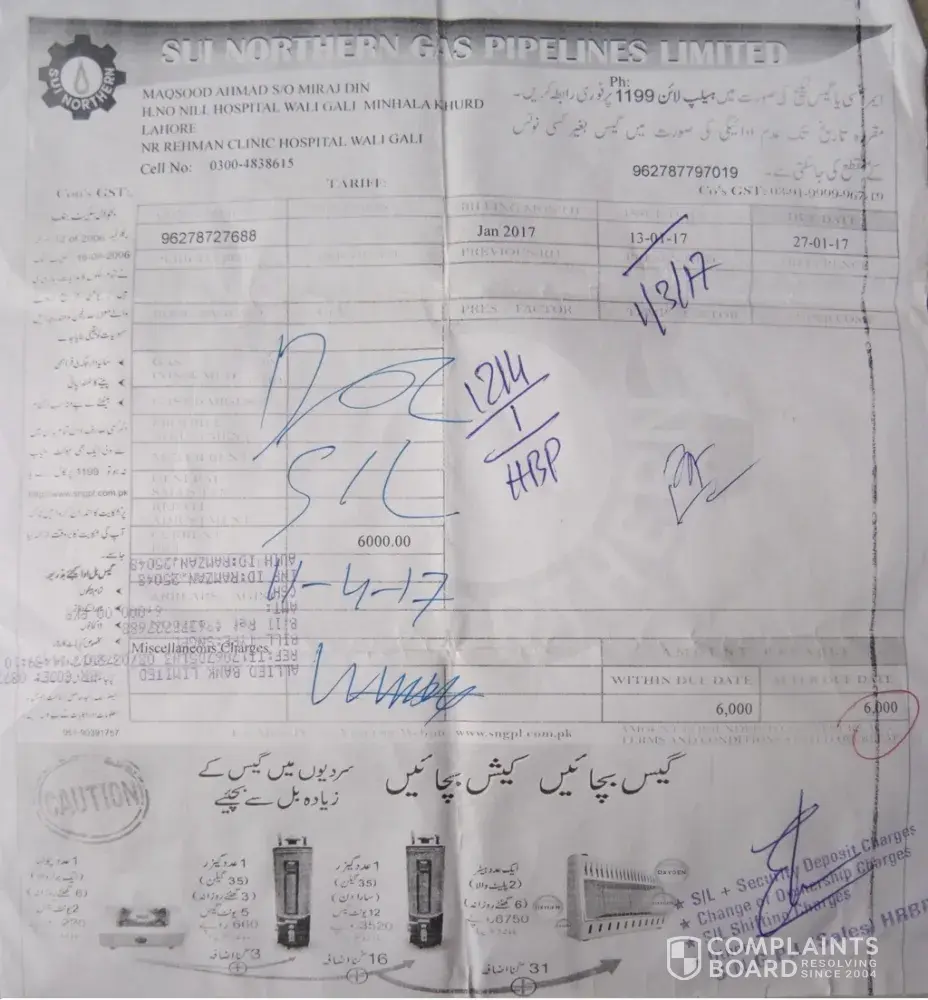 Sui Northern Gas Pipelines [SNGPL] complaint against sngpl mardan and swabi office