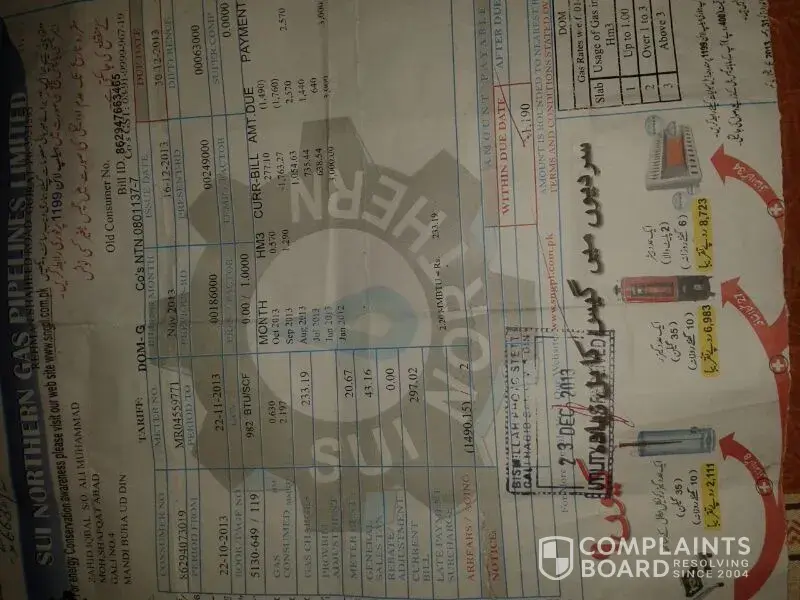 My name is Israr Ullah son of Hayat Khan Muhallah Musal Khan village Topi Tehsil Topi District Swabi. My old Consumer No is [protected] and new number is [protected]. My national identity card number is [protected]. We received a bill of [protected] including arrear of bills which we had already deposited. After frequest visits of Sui Gas Swabi, Sui Gas Mardan and Sui Gas Peshawar we revised it to Rs 3500 after showing old paid bills to sui gas officials. They promised they will correct the adjustment in Compute of gas Company and we will never receive again over billing in future. But as true to tradition of Clerks BadShah and computer operators we receive bills continueous including the arrear we have already deposited and had to go to Swabi, Mardan and Peshawar to revise it before deposit it in united Banks. Higher Authorities are kindly requested to take pity on us and save us from extra expenses of travelling to swabi, mardan and Peshawar to revision of the bill every month and request to Head Office Lahore, Peshawar< Mardan to correct the error for sake of Almity Allah so that we receive bills for the gas we actually consume. Thanks