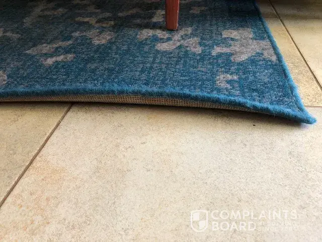 My guest tripped and fell over the fold and got hurt on the coffee table on the last night, we never bothered to report it as it was the last night, but you can go see the unit yourself to inspect the fold in the carpet and the leaking roof .