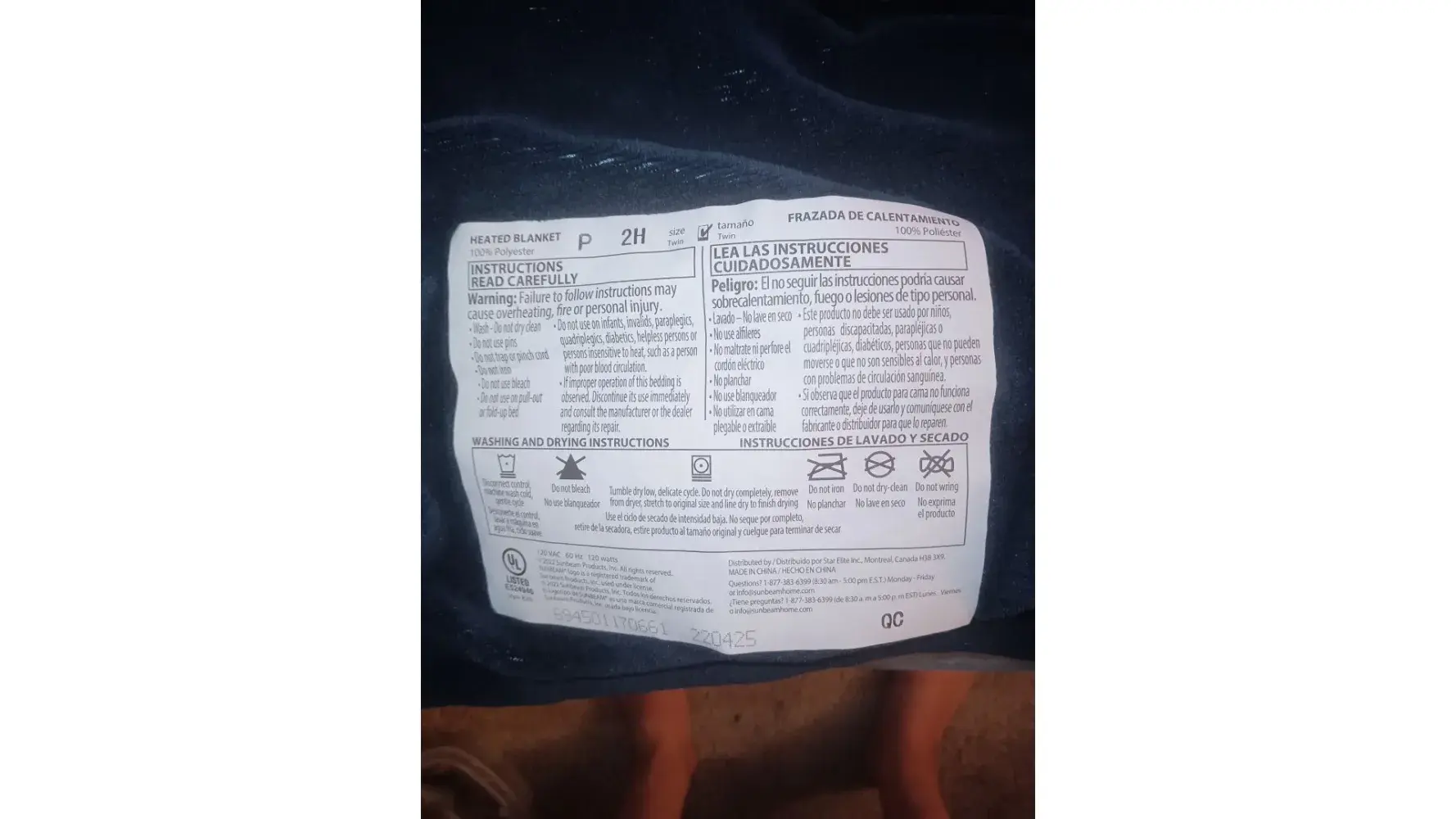 RE: Blankets - SUNBEAM HEATED PRODUCT STYLE 83E [Incident: [protected]]