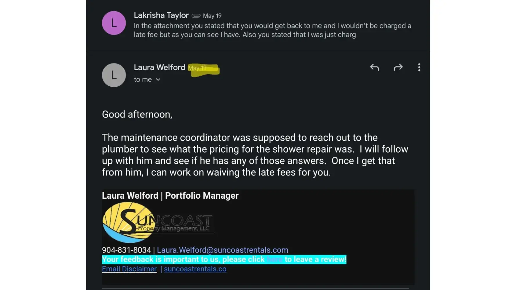 I was informed for months that a Manger would be calling me about charges. Some of the charges are for No freon in the a/c which could have been not done when the last tenant moved out but they are charging me for it. Then the pipes in the master bathroom had to be replaced again nothing I did wrong. Now I'm being charged 450.00 in late fees even though I have been calling and emailing and to no avail NO ONE has tried to assist or call back. I have attached where I was told they would be looking into and then taking off the late fees. This is by far the craziest thing I've been through my rent has never been late and I should not be charged.