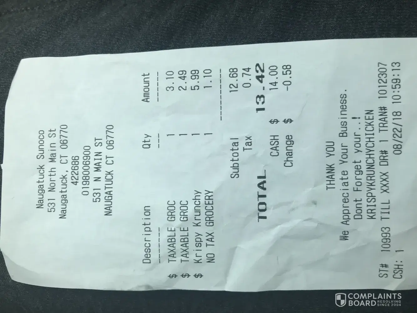 I hope you will find this message in best of your health! Today we visited to Sunoco gas station. We put gas in our car then we bought some stuff (chicken and drinks). The cashier was full time busy on mobile phone and he was not paying attention to our order for even a single second. Due to using mobile he charged us extra. When we figure it out i just asked him to check the receipt again but he was still busy on his call and denied that he didn't charged us extra. When I explained everything and he realized that he is wrong he just misbehaving and just us he don't want to sell anything to us. Attached is the copy of that receipt.