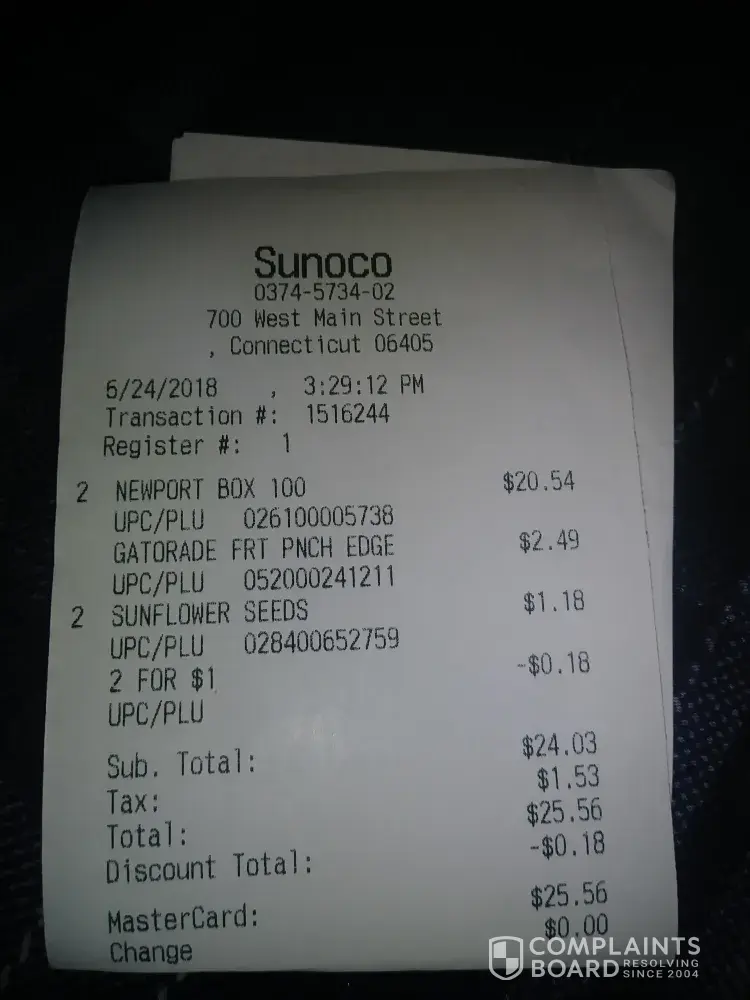 Sunoco coffee and customer service