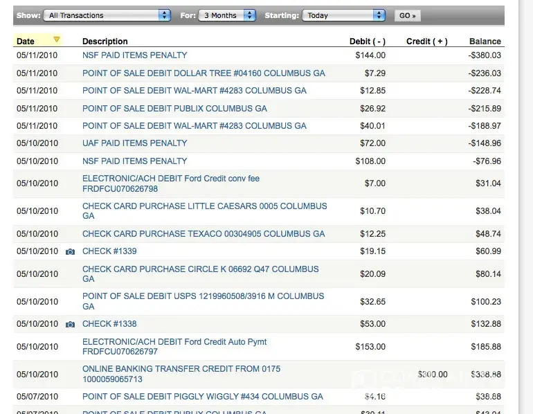 Suntrust has been drafting my account when I am maybe a few dollars short, from largest to smallest to get more 36 dollar overdraft fees out of me, no matter if I made the smaller transaction before the largest, in a time when my wonderful family needs the money the most. Maybe we should all go back to the old fashion way. CASH!. Then maybe the jerks will lose their jobs, bonuses, and see how they feel when $36 is taken from them for a $ 2.00 transaction.. I will never recommend Suntrust to anyone!
