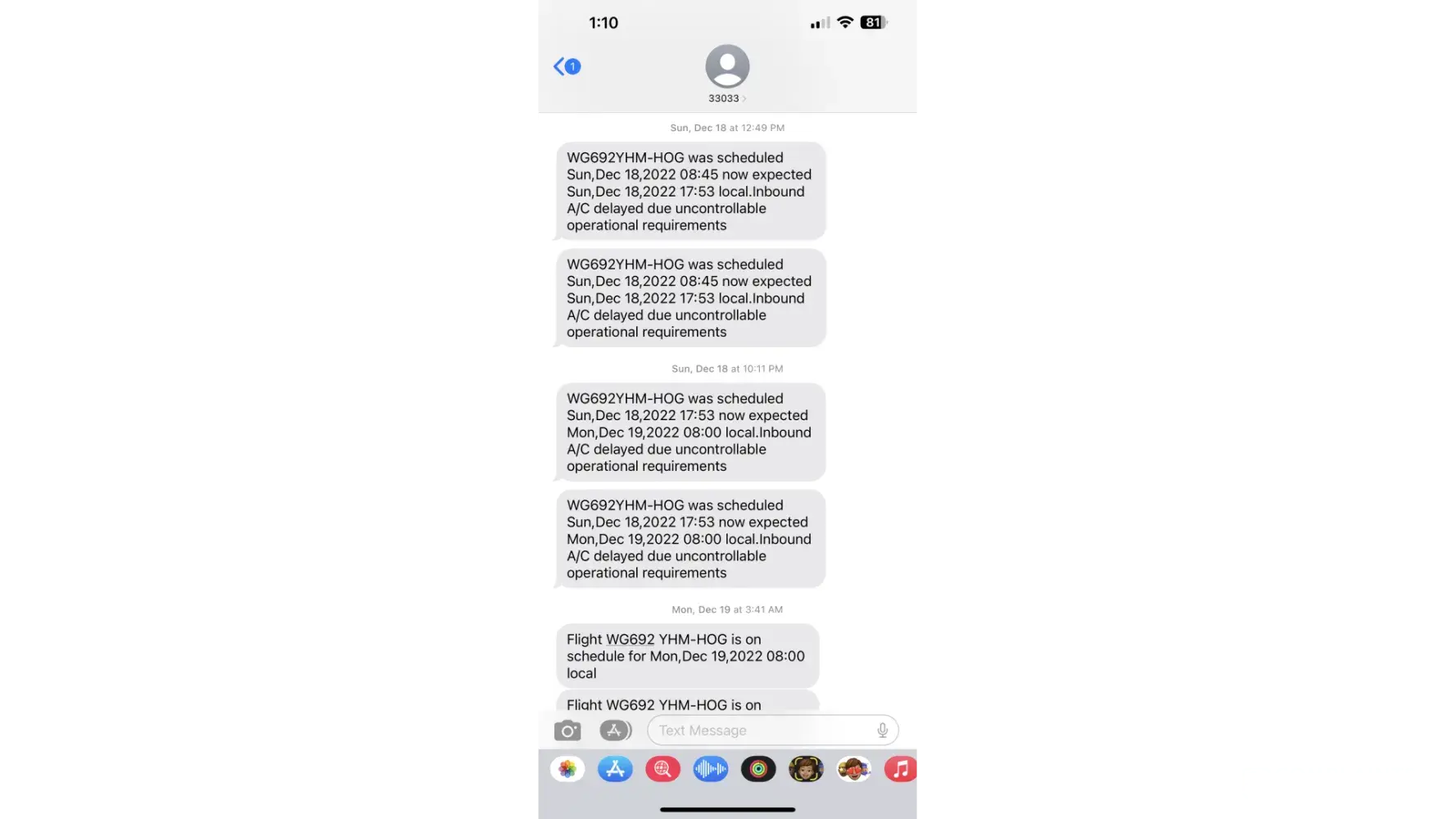 Flight WG 116 scheduled for 6:15 on Dec 24, 2022. Re-scheduled by Alert to 8:15.