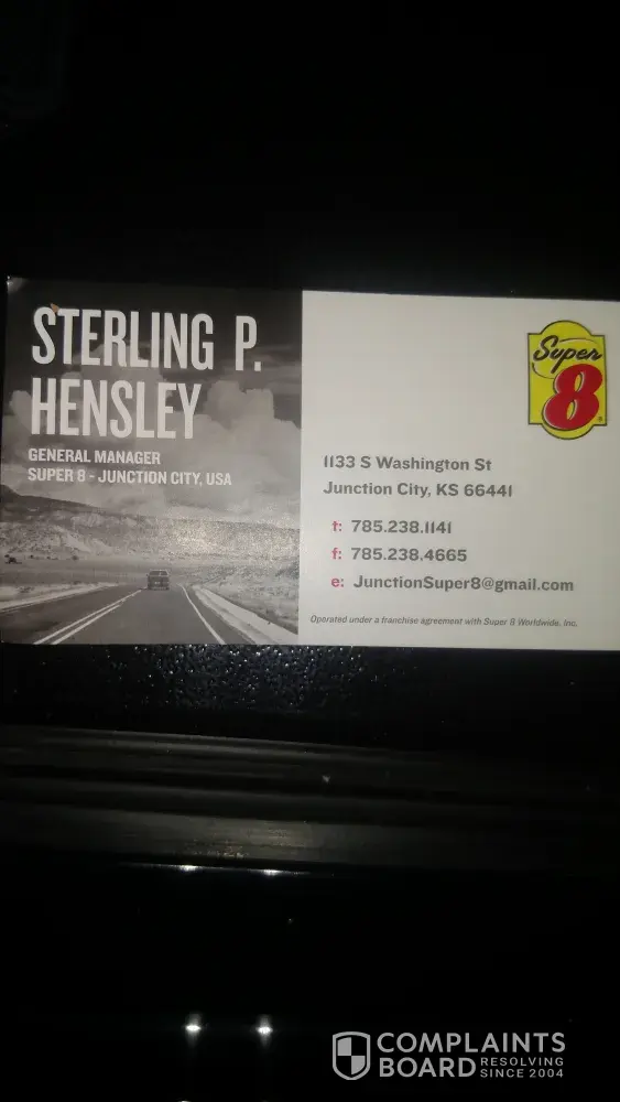 We are on our annual vacation motorcycle ride from Illinois and headed to Colorado Springs. We stopped in here for a Over night stay. I'm head of Food Safety, my girlfriend runs a best western, another woman is a grade school teacher, another one owns a highly reputable hair salon and my buddy is state certified in pest control. As he entered the room he looked around even know we are vacation it's still on his mind. The bed in 214 was invested with bed bugs. We went down to the office to let them know about it and the young lady behind the counter was really nice about it but then all of a sudden a guy with two big gauge black earrings came flying out of the side room and said we were being loud about it and we never raised our voice. My buddy attempted to show him his state idea and told him he was just letting her know. The guy told the young lady to refund us our money and tell us to get off the property. He walked back into his office or whatever it was and I asked what his name was and the clerk gave us three of his cards. Sterling P. Hensley is his name and he is the general manager. We were refunded then forced to look for another hotel that had two rooms available in junction City which took us a good hour and many phone calls to find another one after a 12 hour ride and this took place on 5-20-17 @ 10:43 pm. If you would like to check the cameras and see if we were out of line. The clerk said she was shocked by his reaction also. Corporate will be notified when our trip is over. Thanks to the clerk and her hospitality. I travel for work weekly with company accounts set up at alot off hotels and if I was working we would not be doing business with any of your branches after this.