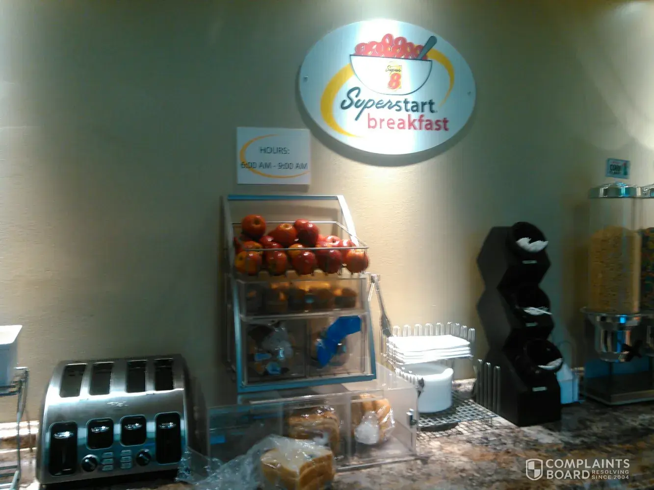 I've never stayed at a super8 before and hopefully, will never again! The reception area was dirty, the actual room, disgustingly filthy! Kept shoes on to prevent the carpet from making contact with my feet. Had a shower and attempted to use the hair dryer. No luck there! Not working. Ok, attempted to find the tv remote, not there. Called the desk and was told i'd have to come to the reception desk to acquire one. (In my pajamas, don't think so) asked for a wake-up call for 4:15 am and then confirmed it in person at the front desk. Never happened! And, are you ready for this, it is not unusual to note that on occasion, there is oral sex between employees when they think no one is at the reception desk. Great experience. Not