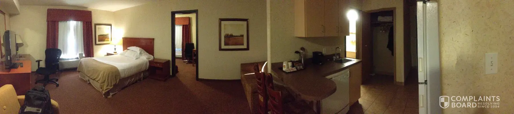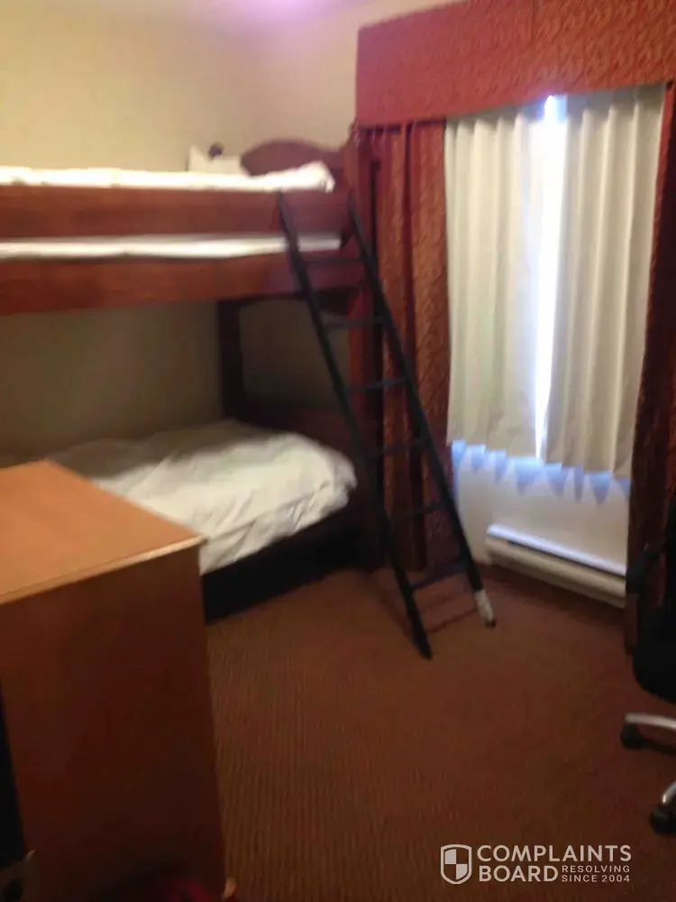 I booked a 2 bedroom family suite with a Queen bed and bunk beds. I got a 1 bedroom suite with the bunk beds in the bedroom and the queen bed in the living room. The hotel says that is their version of a 2 bedroom because it has 2 beds. Hotels.com says the hotel says I'm in a 2 bedroom, but won't allow me to send pictures and won't book a 2 bedroom in another hotel at no extra cost to me. They hang up once I get to the supervisor. The hotel will not provide an actual 2 bedroom even though both of the front office staff told me they actually have rooms with 2 bedrooms.. real 2 bedrooms not just beds in the living room because the one actual room like that is being renovated.