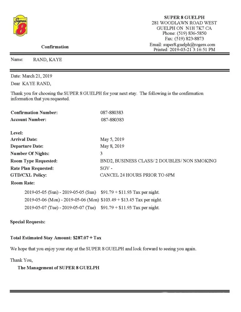 The Municipality of Clarington recently booked accommodation for two of our employees to stay at the Super 8 Motel, 281 Woodlawn Road West, Guelph, while attending training at the University of Guelph. The dates of stay was for three nights from Sunday May 5th to Wednesday, May 8th. When these employees returned we were presented with photos showing the unsuitable conditions of the assigned room. The problems included a ceiling patched with a piece of wood and black mold in the tub/shower and dirt around the main entrance door into the room (photos attached). Based on the conditions one of our employees decided to find better accommodation elsewhere in the area while the other had to remain due to financial reasons. It has also been brought to our attention that other Super 8 guests may have declined their bookings as a result of the unsatisfactory conditions that were being offered.