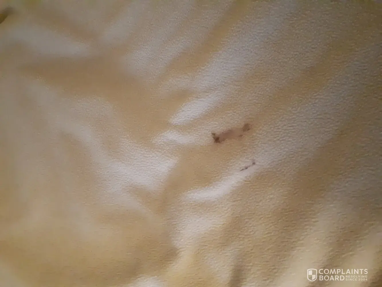 THE blanket on the bed had fecies.