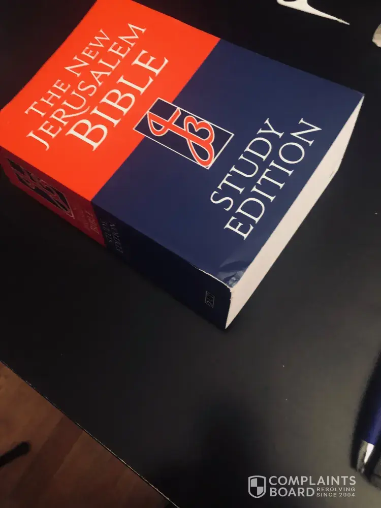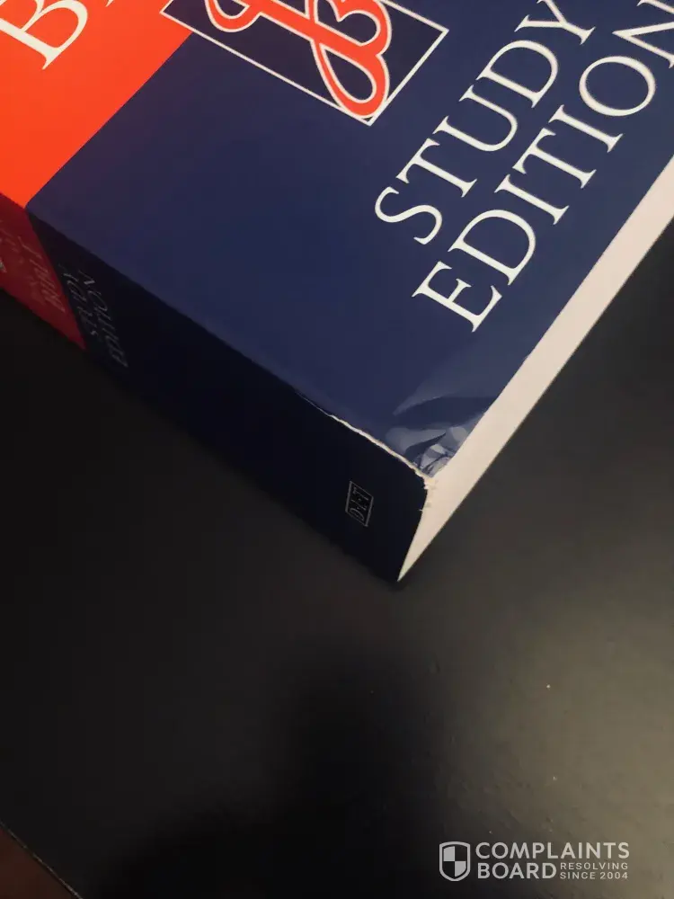 The second photo shows a torn on the corner of the Bible itself probably caused by the torn packaging.