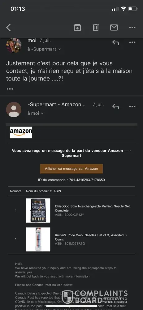 Bonjour, j'ai passé commande avec vous et je n'ai pas reçu mes commandes, pourtant dans les suivis des commandes sur internet il est marqué que ça a été livré, Amazon lui, dis que ça a été "expédié" donc pas encore livré.