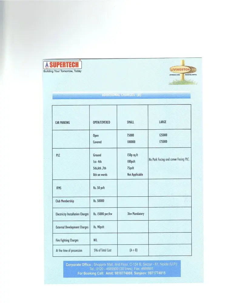 6. Maintenance Security Deposits – This is deposit, not a construction cost of the flat. We have been charged Rupees 50 per square ft., instead of Rupees 20 per square ft. for the Maintenance Security Deposits which is clearly listed on their Supertech’s website. Deposit is a deposit and every property owner in the Livingston community should be paying the same deposit for maintenance security. This should be the same for every homeowner irrespective of when someone booked the flat as this is being deposited to RWA. Why Supertech would charge us more and deposit that to RWA more from us, compare to others, unless Supertech is keeping the extra for their use and making money out of it. Therefore, why this is NOT been adjusted for us.