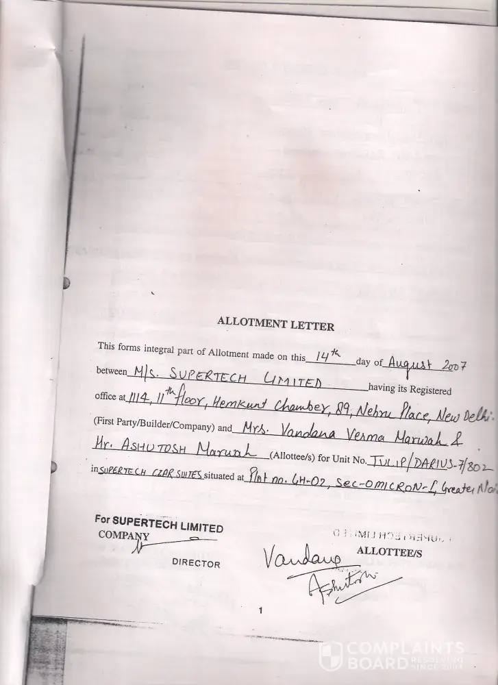 If any of you are in the same situation, please let me know and we can file the case together. My goal of this complaint post is to find more people who have similar issues with Supertech Limited and file the case together. My two cases are pretty much ready to go.