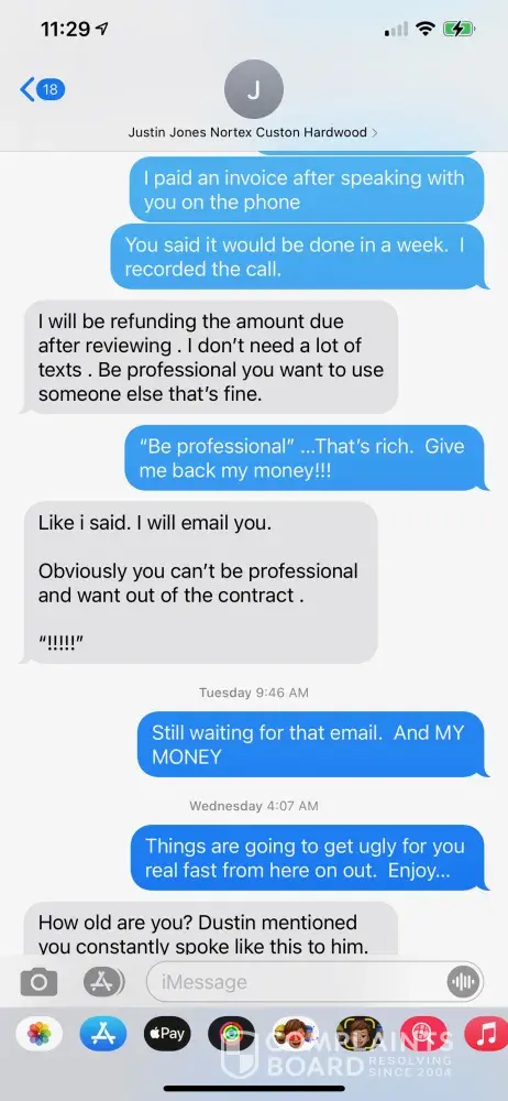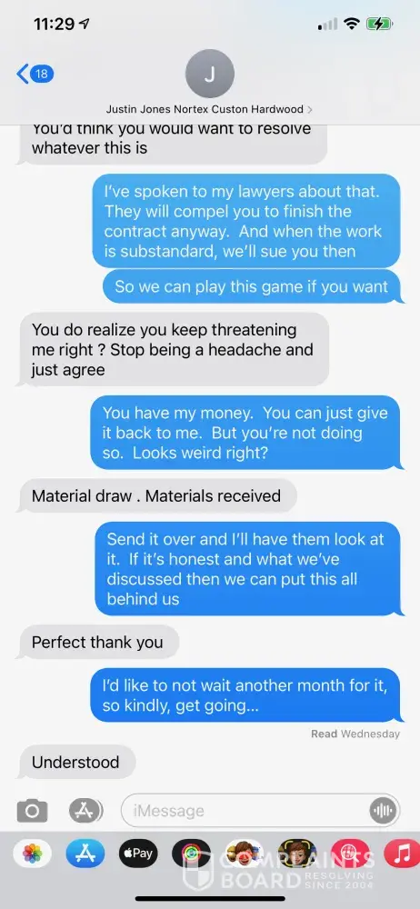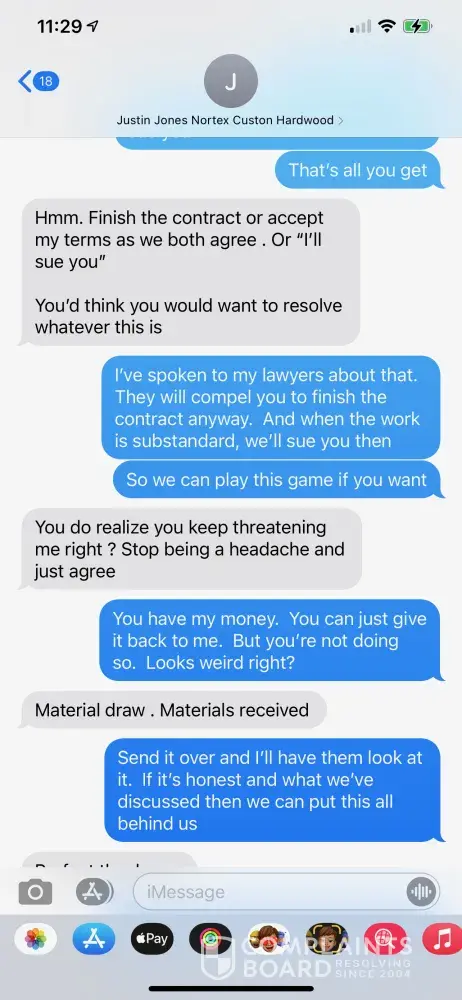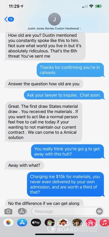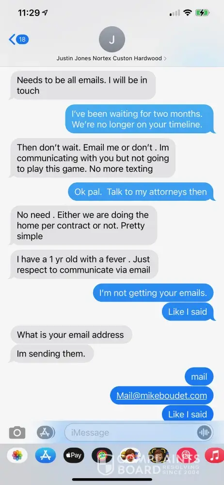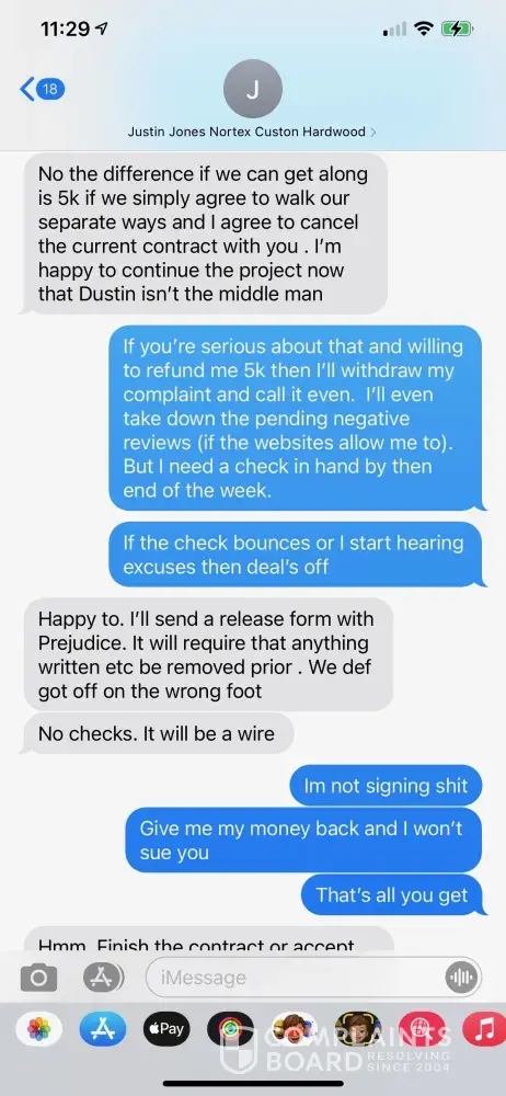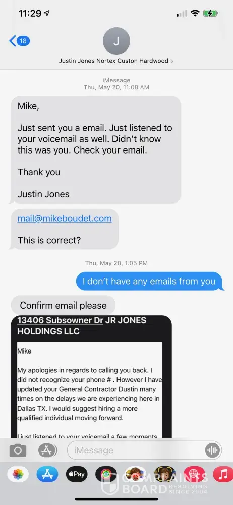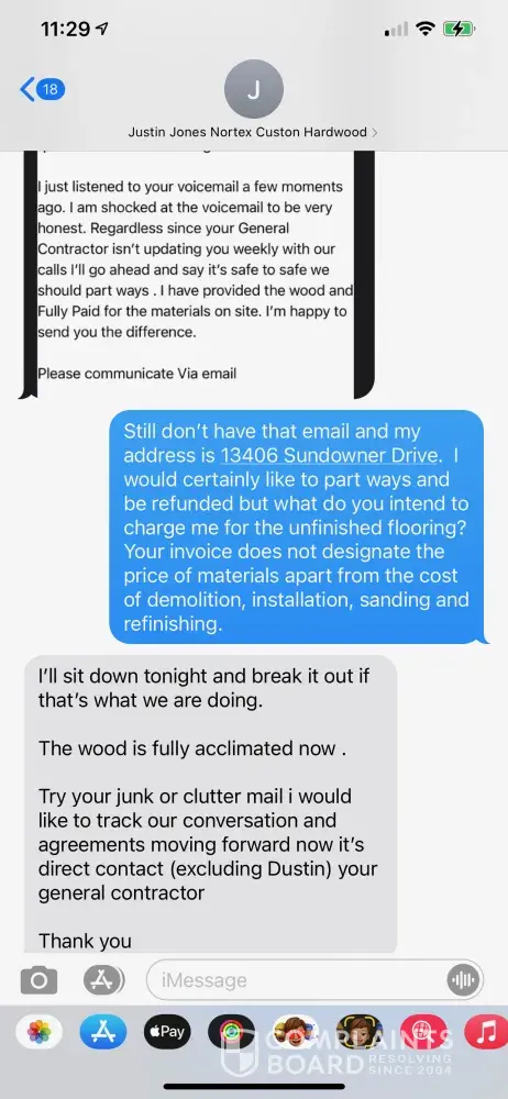PLEASE BEWARE OF Justin Jones from Nortex Custom Hardwood Floors (Also goes by the name JR Jones Holdings LLC) and Dustin Burell Justin Jones spoke to me once after the Winter Storm where our home was destroyed. I found him through a contractor called Dustin Burell from Pro Service Roofing and Construction. I expressed to both of them that my main priority...