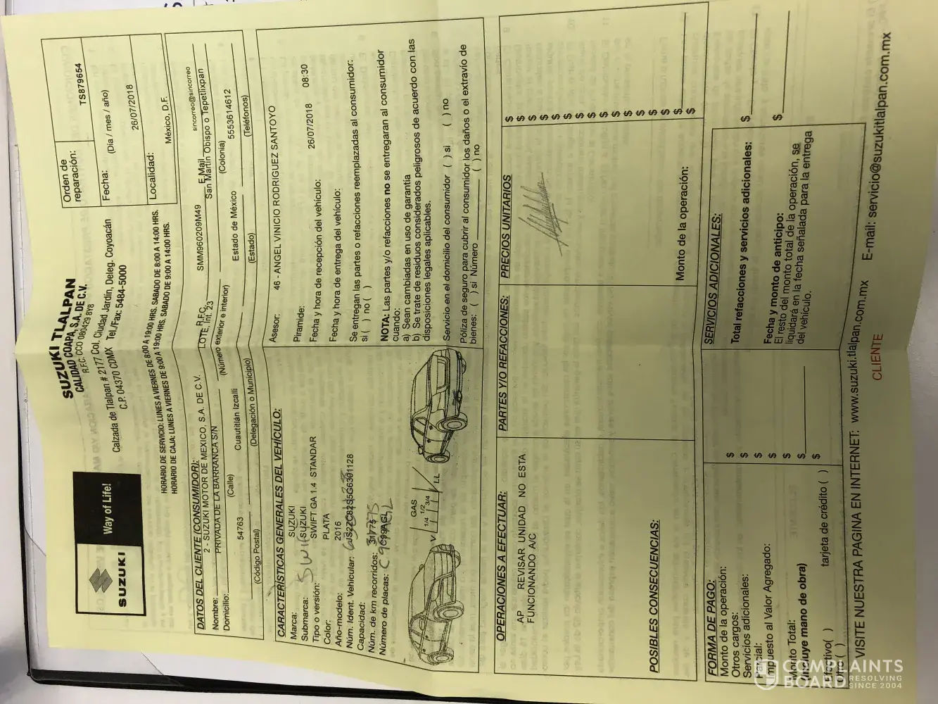 I just wanted to let you know how your brand is being managed in Mexico and how such a poor service will be reflected in a negative recommendation on my part to any person wanting to but a Suzuki car.