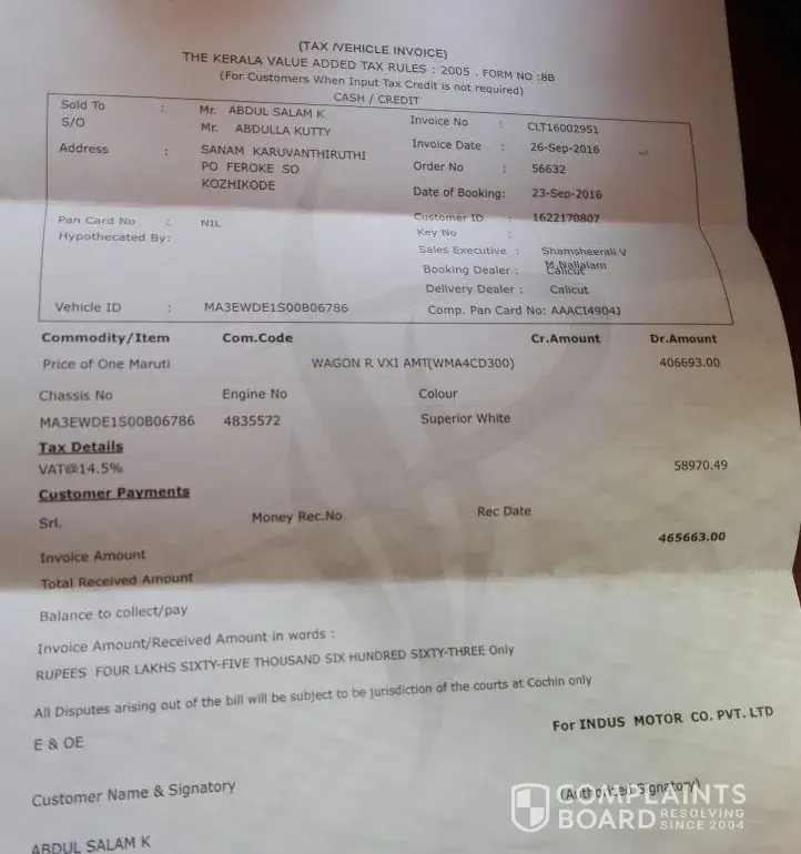 I purchased my new WagonR-2016 model from INDUS motors_calicut.