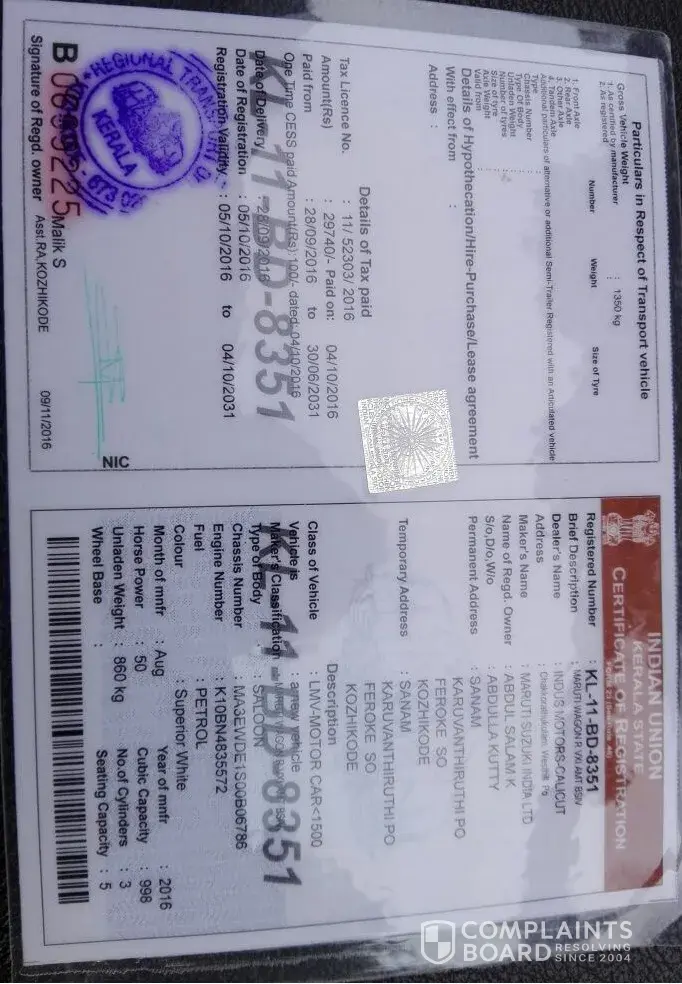 Suzuki rust formation in my wagon r car - reg number kl11bd8351