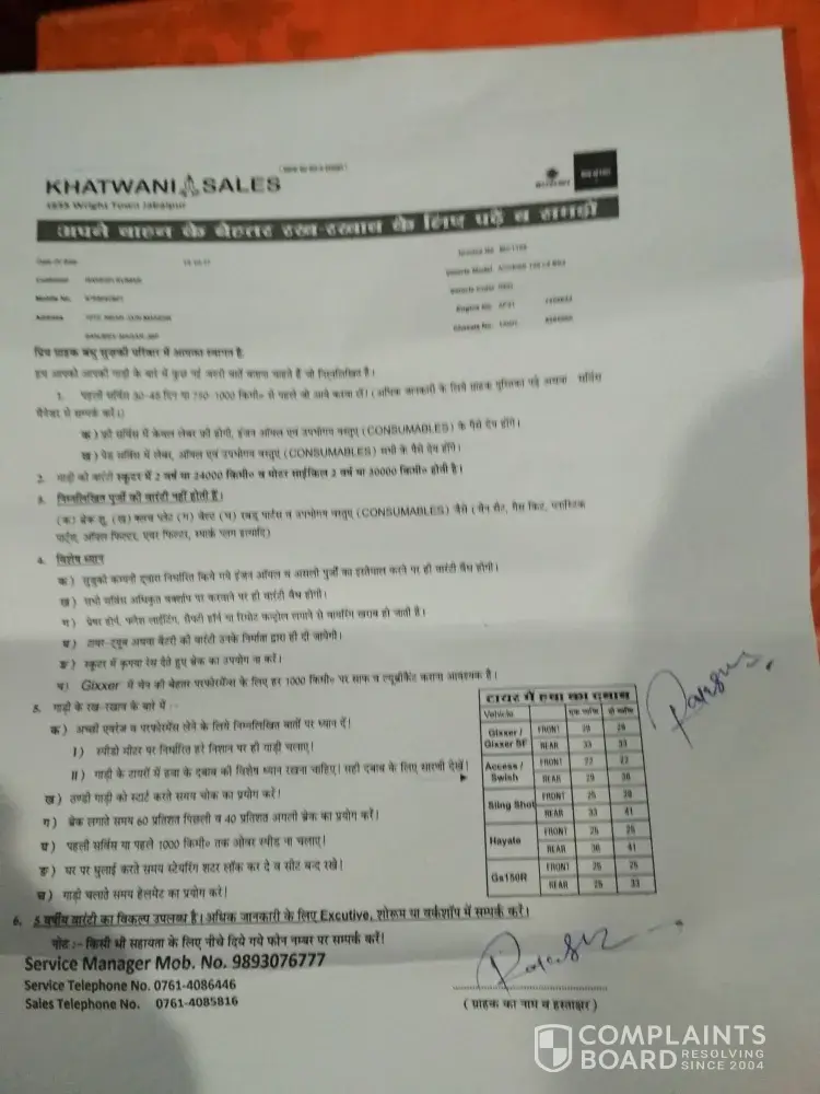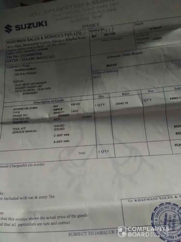 Suzuki complaint against al-khair suzuki hyderabad