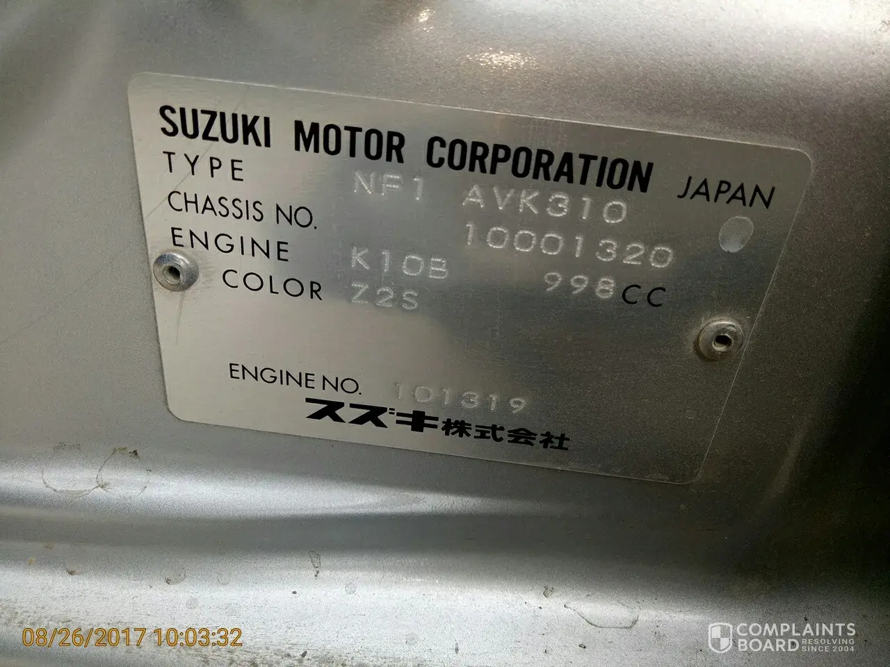 On 8/12/2017 I contacted Suzuki AU via Facebook requesting a reply to my concerns. Suzuki AU have not responded.