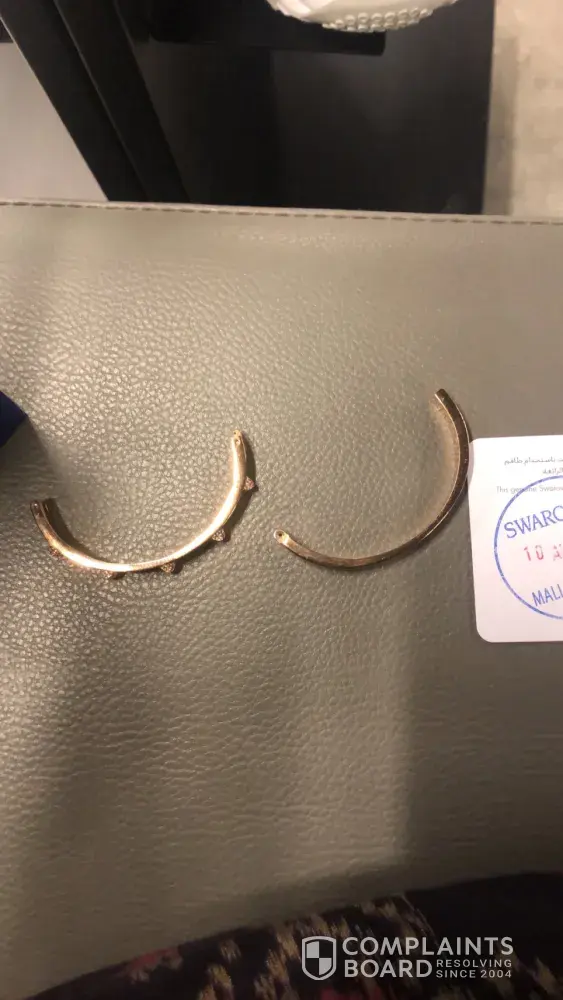 I wonder what kind of analysis by competent employees have been done from the photo and has resulted such a consumer complaint feedback. I wonder to ask these Quality Managent Responsible or who the responsible is "what is the guarantee of Swarokovski products for" if not in case of non-user failure".