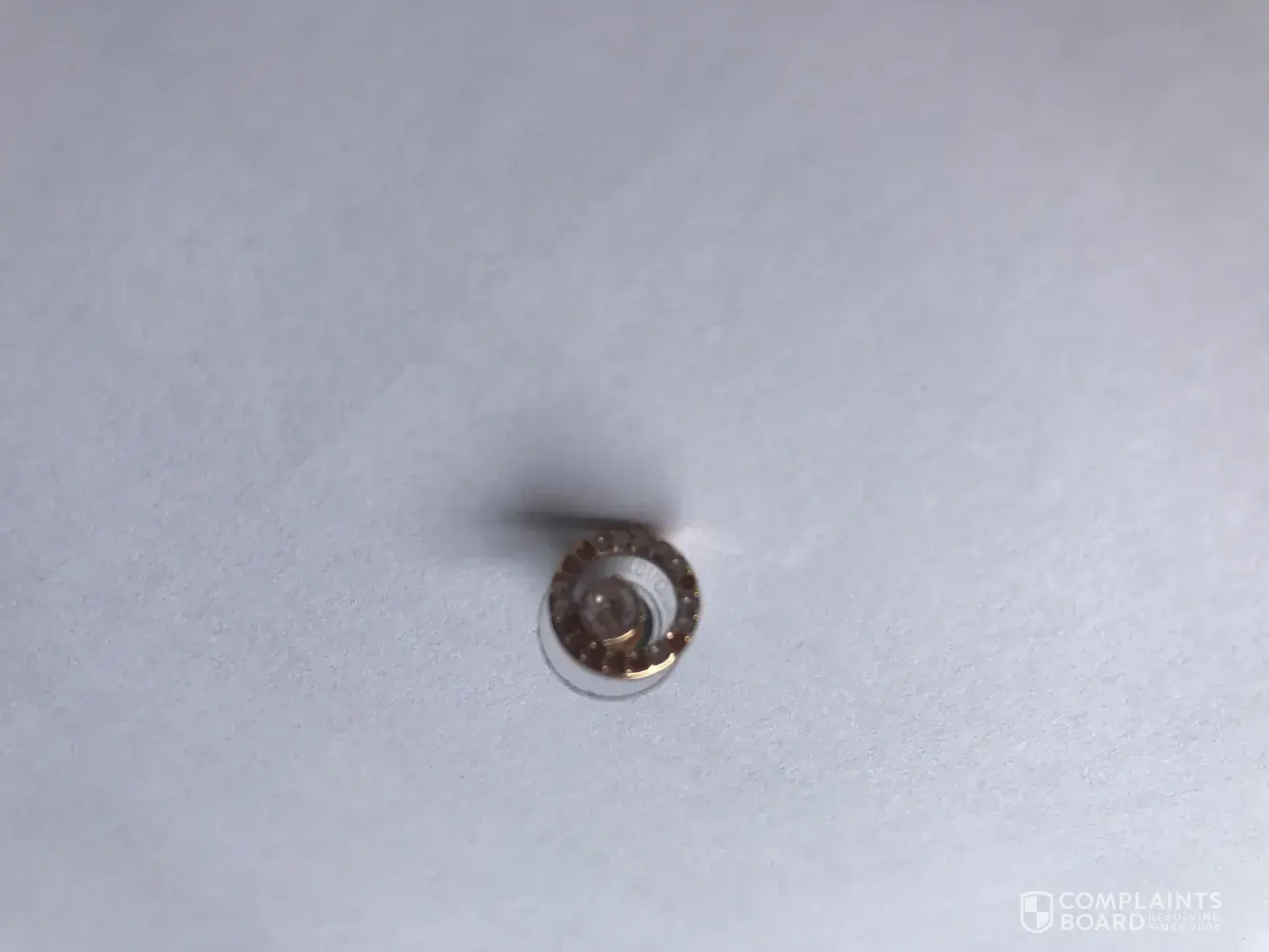 A desirable resolution would be replacement of the ring with something that is fully silver.