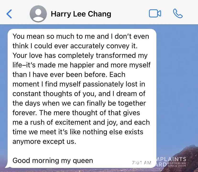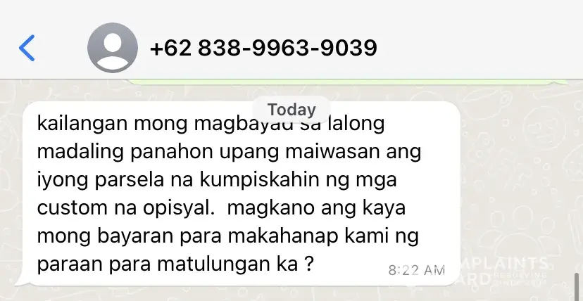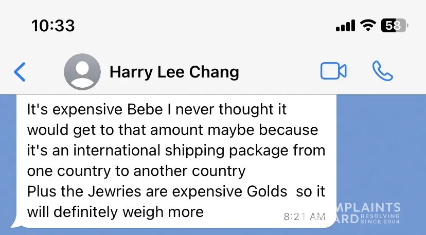 Someone named Harry Lee Chang (+[protected]) messaged me in IG and said that he wants to know me better and chat in whatsapp instead. We continue talking in whatsapp and he always greets me good morning with flowery words/quotes. Then he told me that he has a son and his prev wife died in an accident. His family is in Thailand and he was working in Greece(currently in contract in Oman). Then one day he asked me to pray for him so he can get the contract in Oman. And so he did. He accepted and to celebrate it he told me he bought a dior bag. I told him that I will accept it in person since I already have doubts on him but he insisted to deliver it via air freight (https://www.swiftdoorcourierxpress.com/trackingshippment/index.php). I said im not gonna give my details but he kept on asking me with his flowery words. I gave a general address(no house number or anything). And it is currently in “the Philippines†for me to accept. Someone contacted me via whatsapp. Haha very weird since no one contacts you via an app for parcel here the country. They said they are an agent and asking me 35,000 pesos($626) for the clearance of the parcel. I told them that im not gonna spend some money just for the package that was forcefully made me accept. Here are the details and chat from them lol