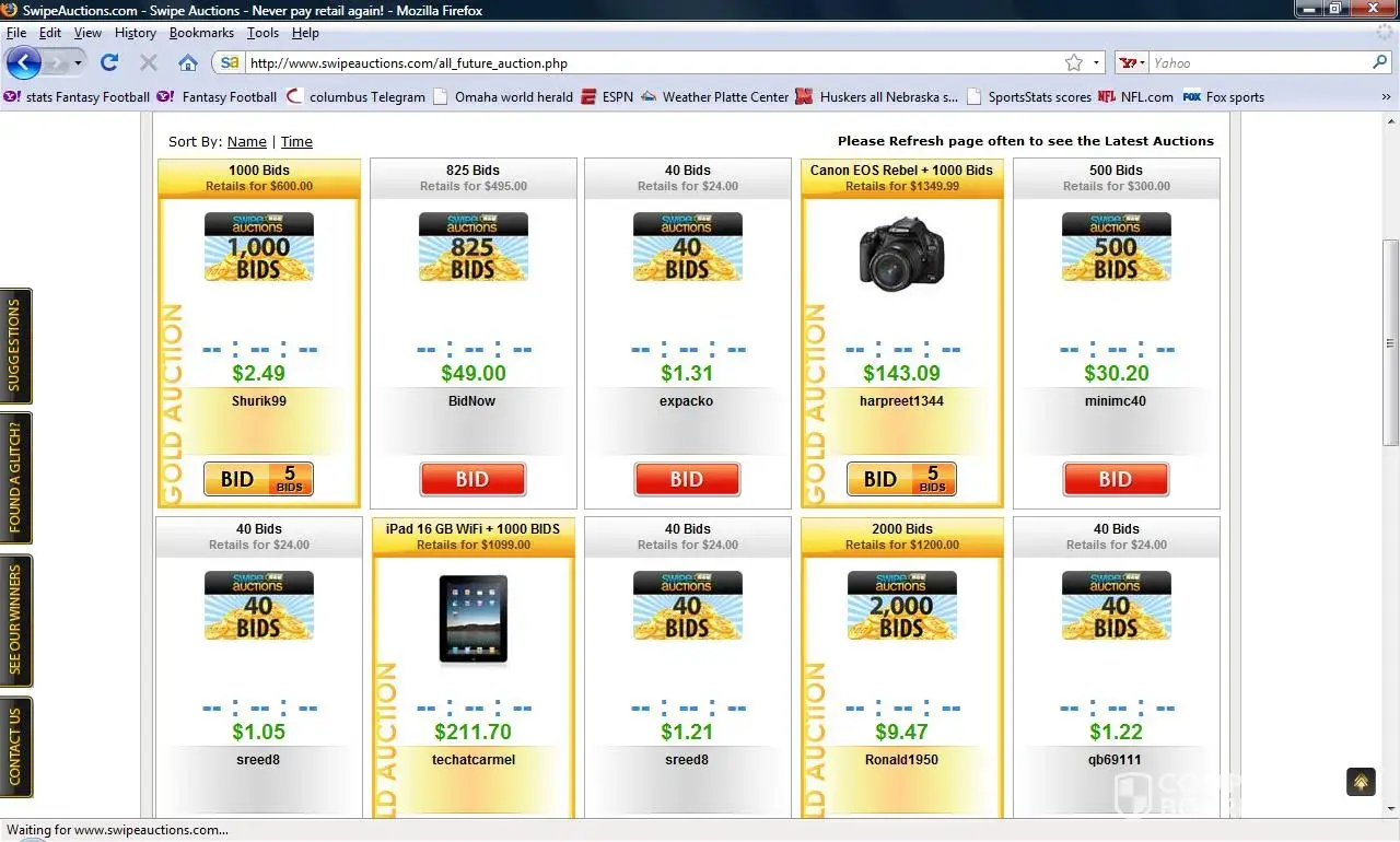 This site needs shut down and now. They get $159.00 from you and there was 12 auctions running, 4 of which were points to their auction site. 2 of the auctions were walmart discount cards. OMG I dont shop walmart. I contacted SwipeAuctions.com for a refund--2 minutes after I entered. They sent me a link to fill out forms and it will take 15 days after they receive the snail mail form.