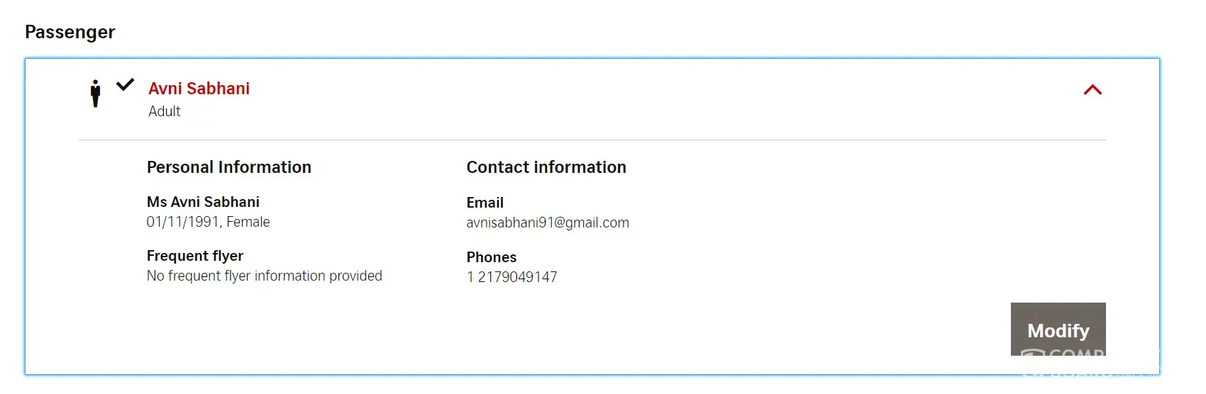 My passenger details clearly say Ms. Avni Sabhani, but my reservation confirmation states Mrs. Avni Sabhani.