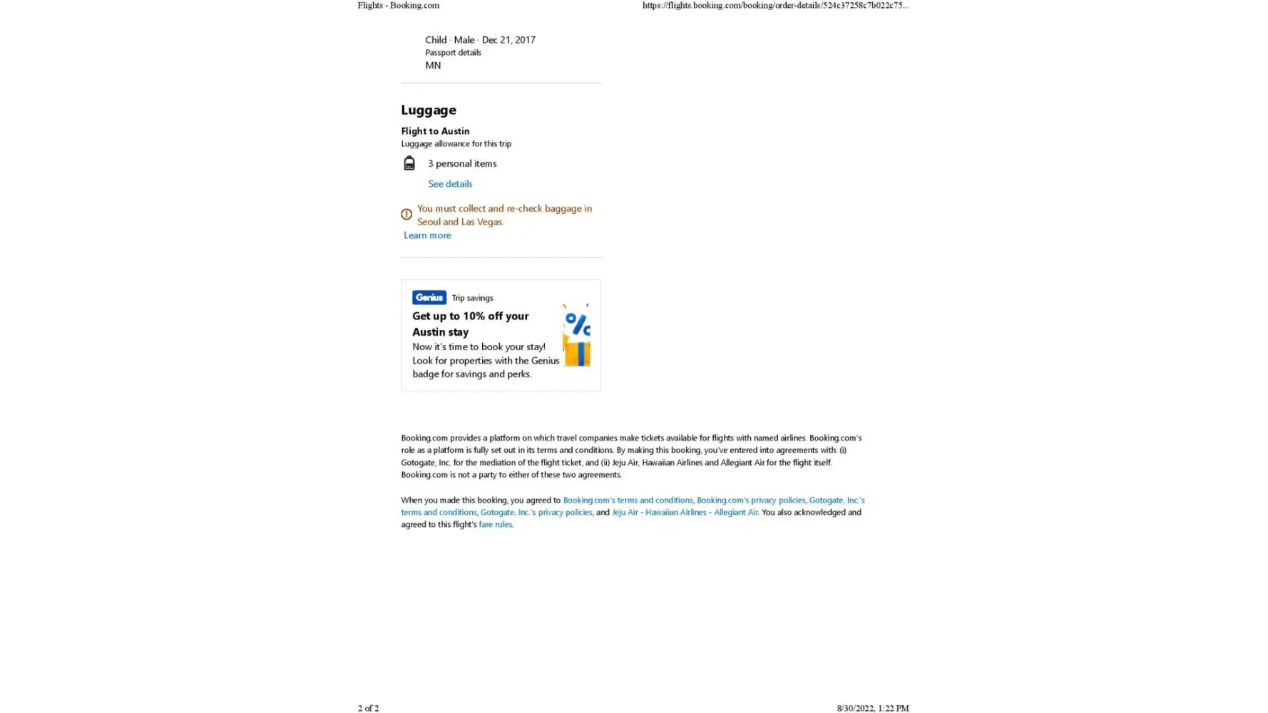 2. We arrived in Incheon on 31 August 2022 for the connecting flight to Hawaii via Hawaiian Airlines. The flight was scheduled for departure at 9:25 PM on 31 August. We went to the gate to collect our boarding passes. However, the staff at the Hawaiian Airlines refused to issue our boarding passes upon viewing our covid vaccine certificate. The name of the staff who refused our boarding passes was Kim Jong-Jun. His name tag reads Jong-Jun, Kim and underneath his name reads Swissport.