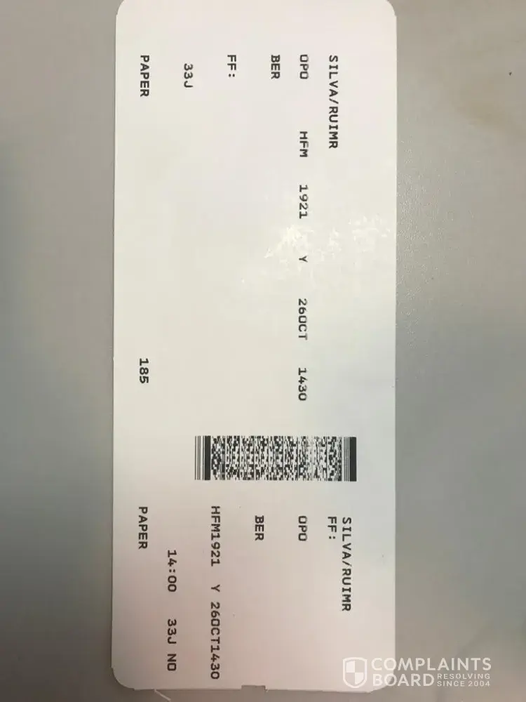 Daarbovenop spraken we achteraf tijdens boarding een kennis (naam: LiseLore) van het hotel aan die hetzelfde probleem had met de applicatie en dus ook niet online kon inchecken. Zij had net hetzelfde papier gekregen met de stempel, zonder problemen, zonder te moeten betalen. (Ook in bijlage)