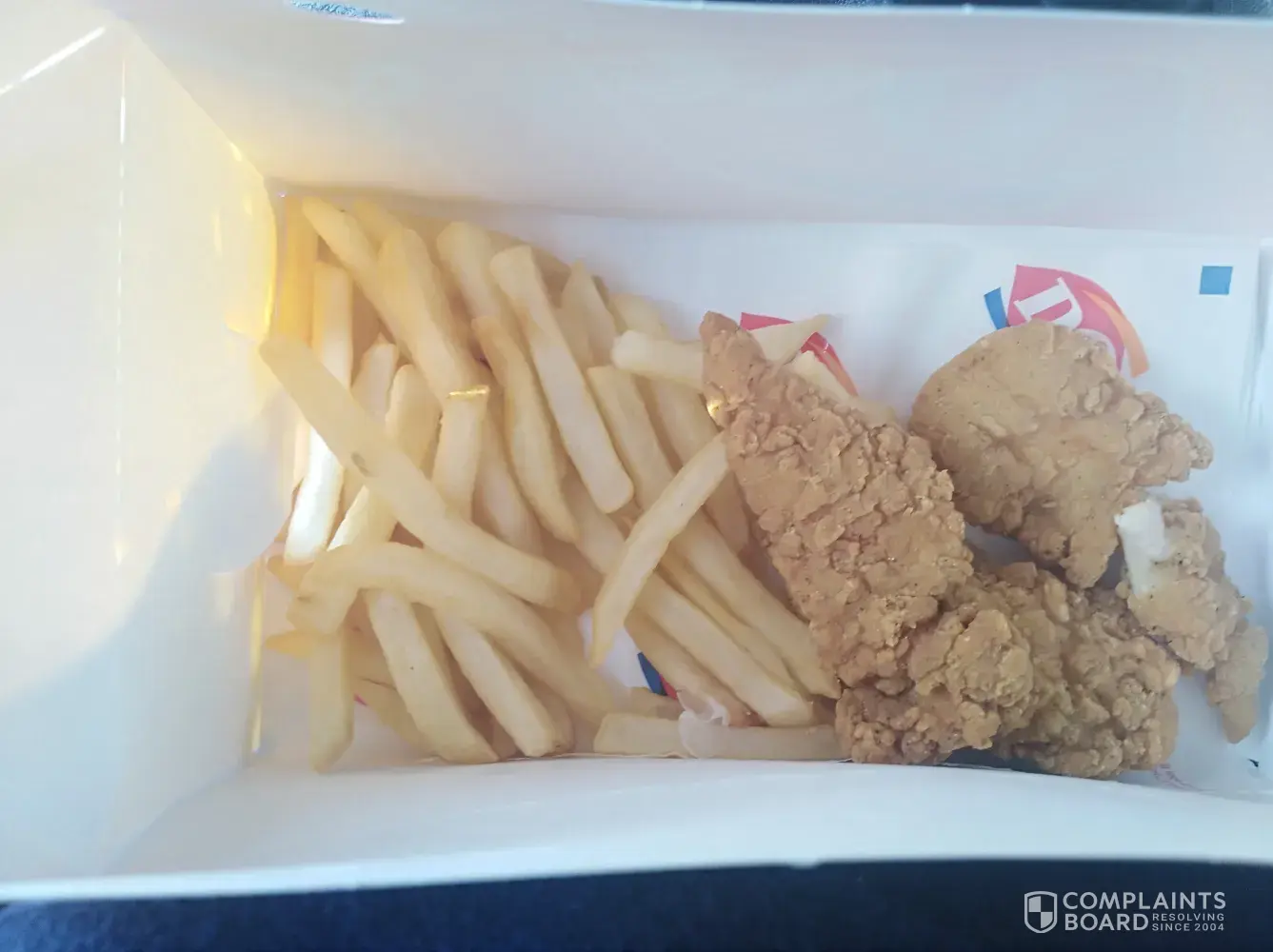 I'M from out of town and I usually don't shop at this dairy queen today I decided to try the tenders meals I ordered 2meals I had very little fries and the tenders were so small and it appears as if some broke it and made 2 tenders I was highly DISAPPOINTED I called and informed the manager of the situation