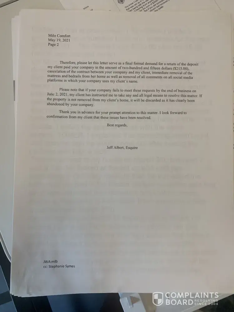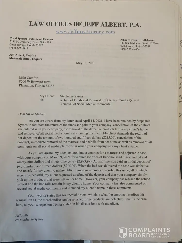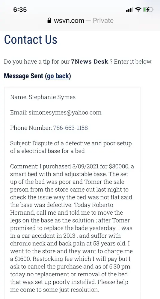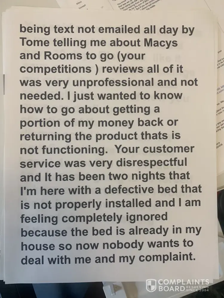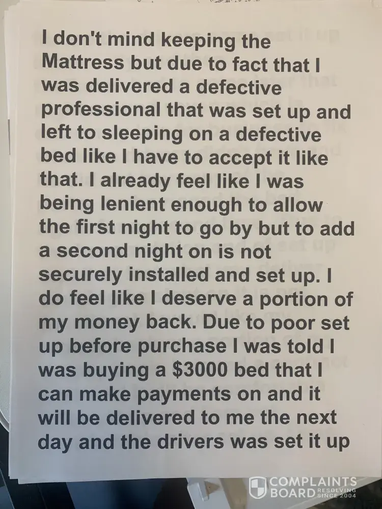 The merchant breached their contract; he took the adjustable base bed back and left me with bed rails - which is not what I purchased- he has ignored all communication to resolve this issue from March, 2021