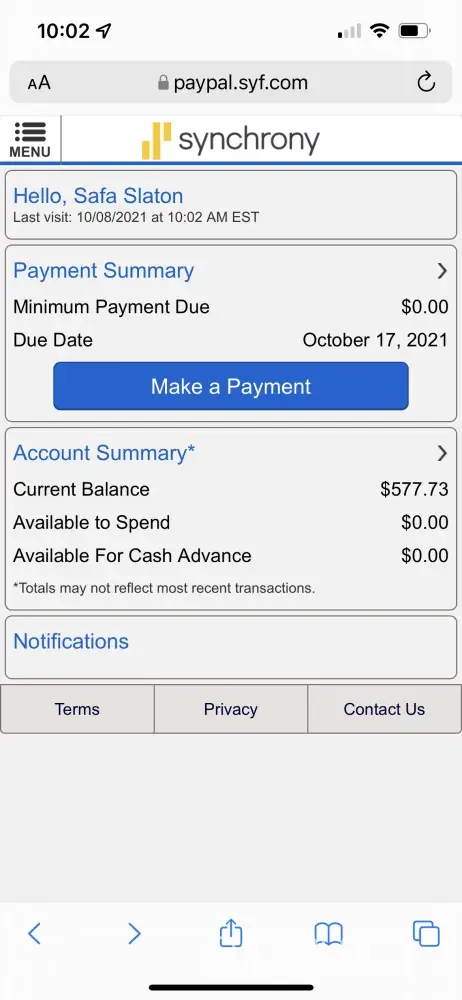My synchrony bank account