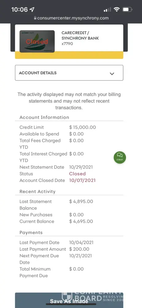 However, when it came time for my yearly review by Synchrony bank, they closed my Walmart card entirely, closed my Dicks Sporting Goods card entirely, they lowered my Venus card entirely, Lowered the CL on my Summit Racing Card by a whopping $1,700, they lowered the CL on my Newegg card by $1,200, they lowered my Synchrony Care Care CL by $400, they lowered my Synchrony Health Care CL by $700... so all in all, they have either closed or lowered my CL on 100% of EVERY card that I have with them, resulting in closed accounts valued at nearly $5,000 alone, and another loss of credit in the amount of $4,000. As a result, my credit scare has dropped more than 40 freaking points because of Synchrony Bank, and I am sure because of that, I will likely be at risk of my good standing with other creditors and them penalizing me too if I don't get my CS back up by the next semi-anaul check.