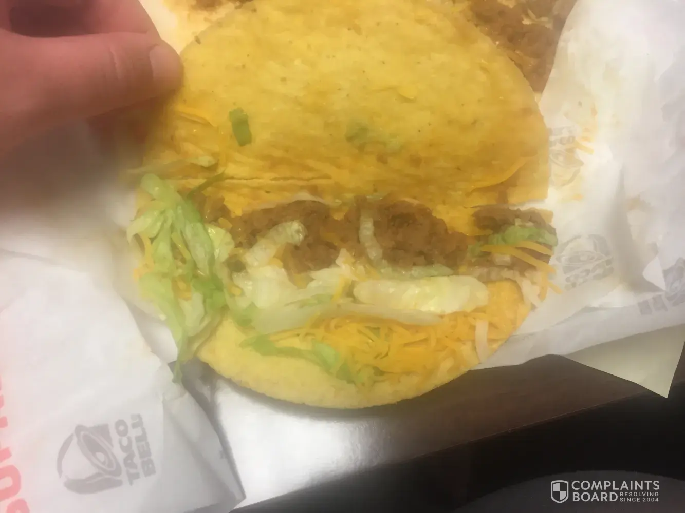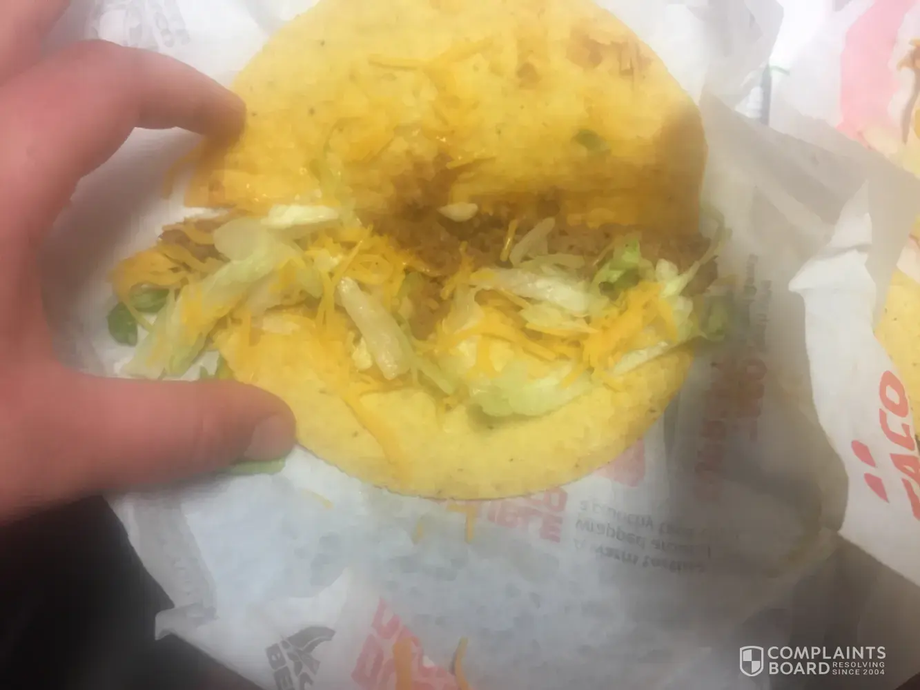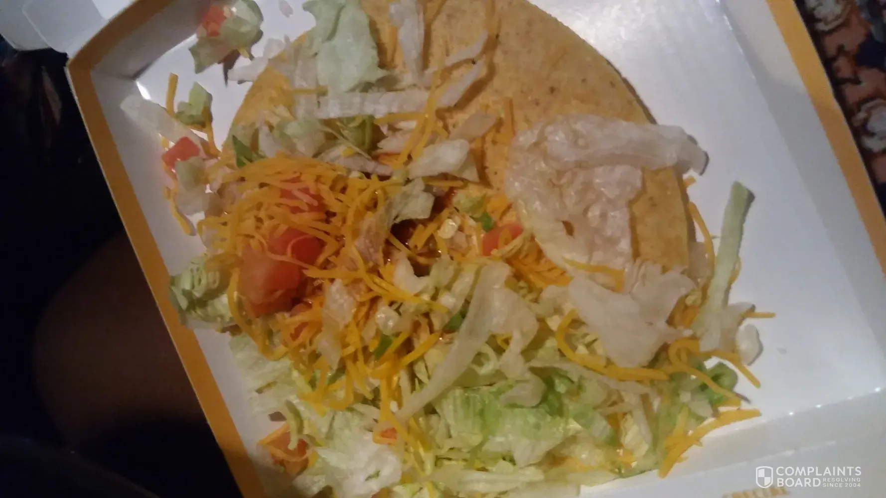 I called and spoke with customer service already but I wanted to show you what I pulled out of my bag when I got to work to eat. The shells are ice cold the meat is cold there's no sour cream on them and I paid 1.20 for there to be sour cream on all of them. One of the hard shell tacos has almost no meat in. I waited at the windo for 7-10 minutes for cold food and food without sour cream and received very poor service. The girl at the window had her back towards me the whole time leaning on the window