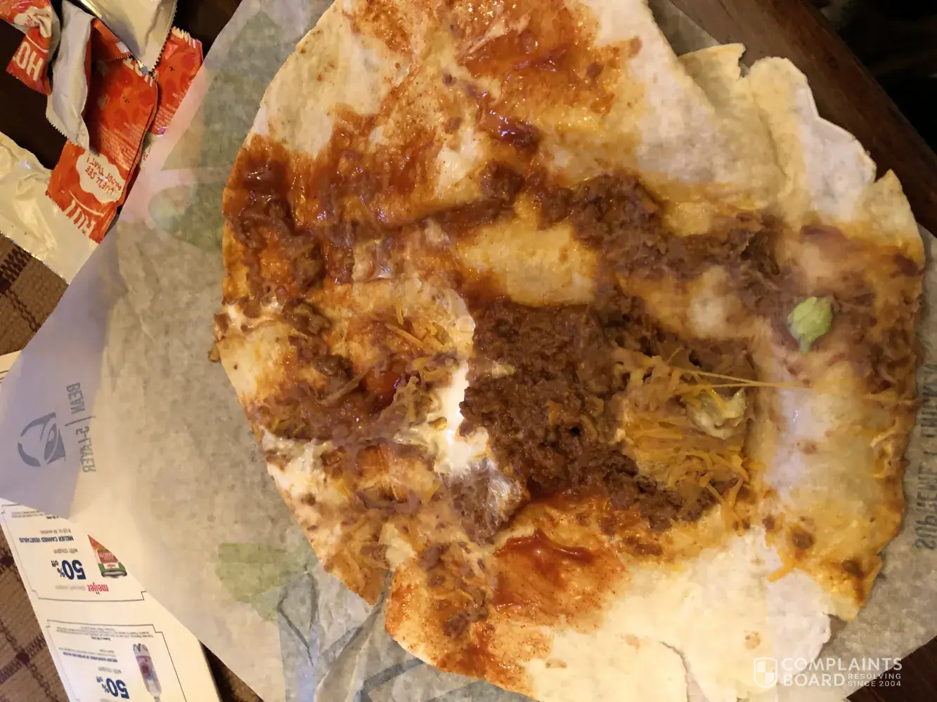 Tacos are a joke and they need to be sued for false advertisement. Tacos have nothing inside the shell but a smear of meat, little lettuce and and a few grains of cheese. I'm thinking about posting a picture on Facebook to show the kind of service we get here in Junction City, KS. I have kept a taco or two and will send pictures upon your request.