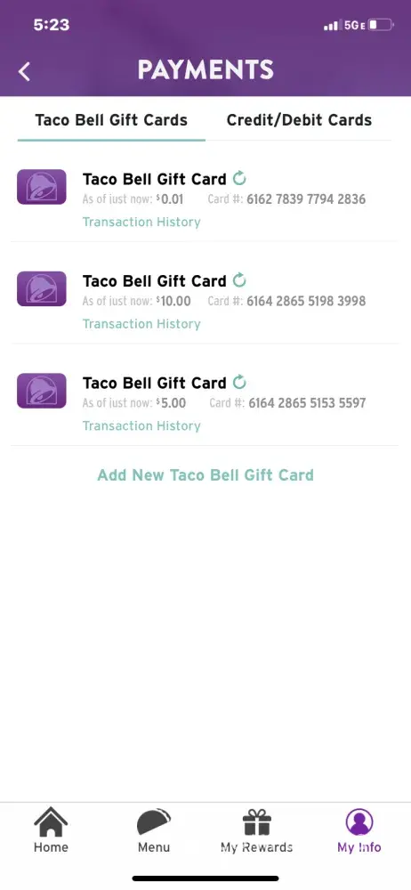 2 yrs ago i purchased gift cards. One has $5, one $10. They show up ... but no link to use them. Now none of the taco bells, in my area, are even taking gift cards. [protected] and [protected]. Have i just list the $15 or can they be cashed in?