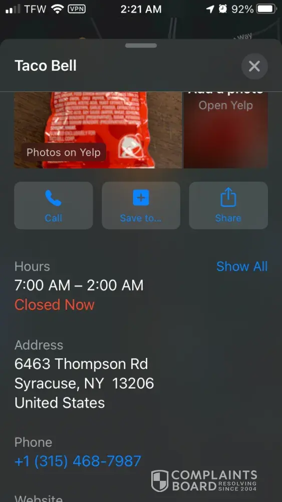 Taco Bell earns a 1.1-star rating from 2 reviews and 2478 complaints, showing that the majority of fast food enthusiasts are dissatisfied with their meals.