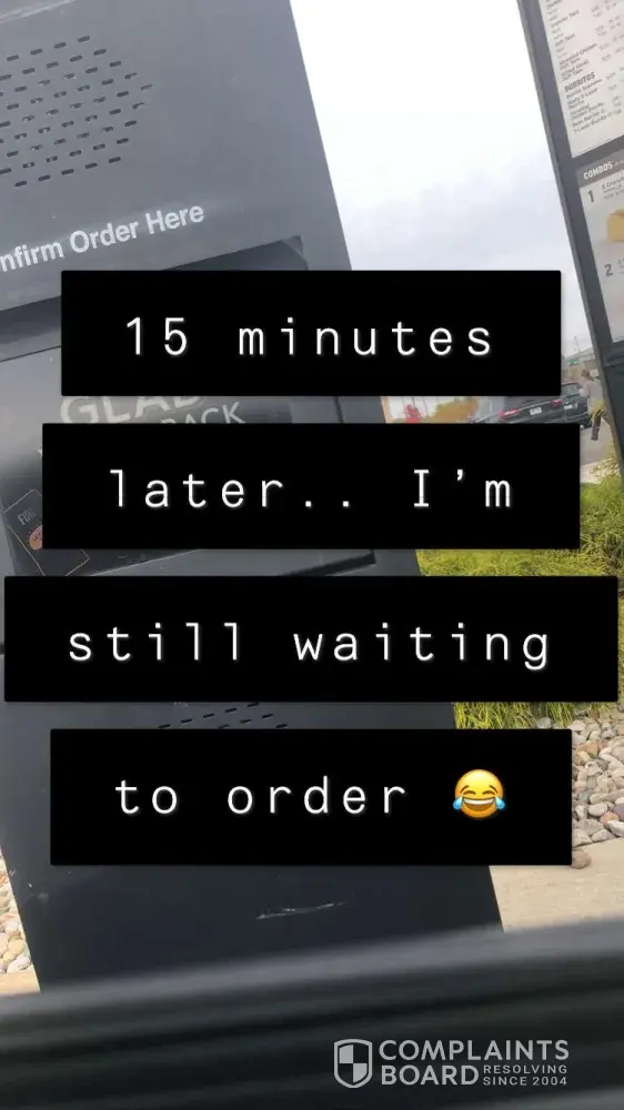 I pulled up to the order box at 3:02PM, watched all of the cars in front of me receive their orders. At 3:15 called the store to ask if they weren't taking drive thru orders and the guy just said they're busy. Cars flew past me leaving the drive thru and one even pulled up the window to complain. Now at 3:23 I'm finally ordering my "fast food" that is literally going to make me late for work. This entire experience was completely unacceptable
